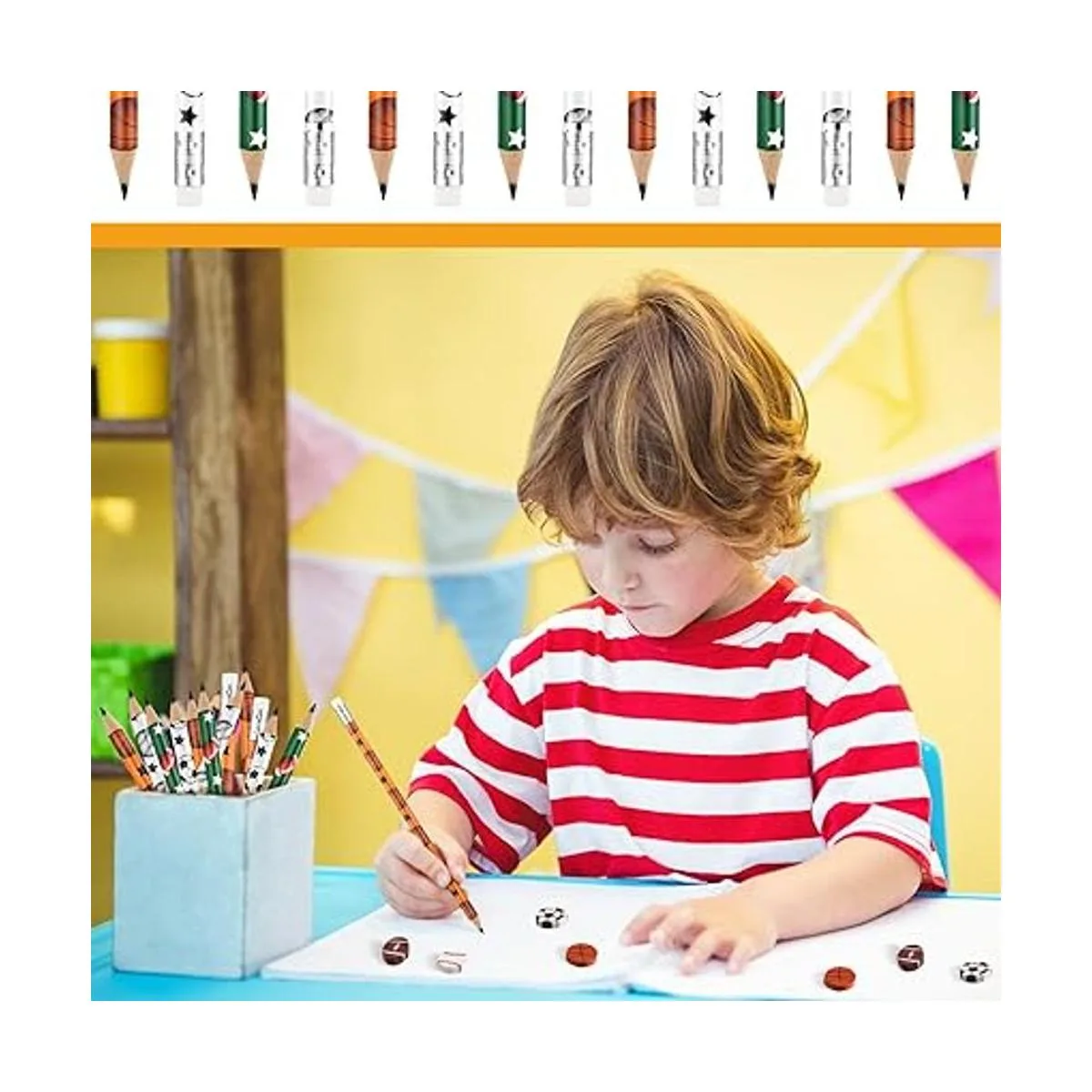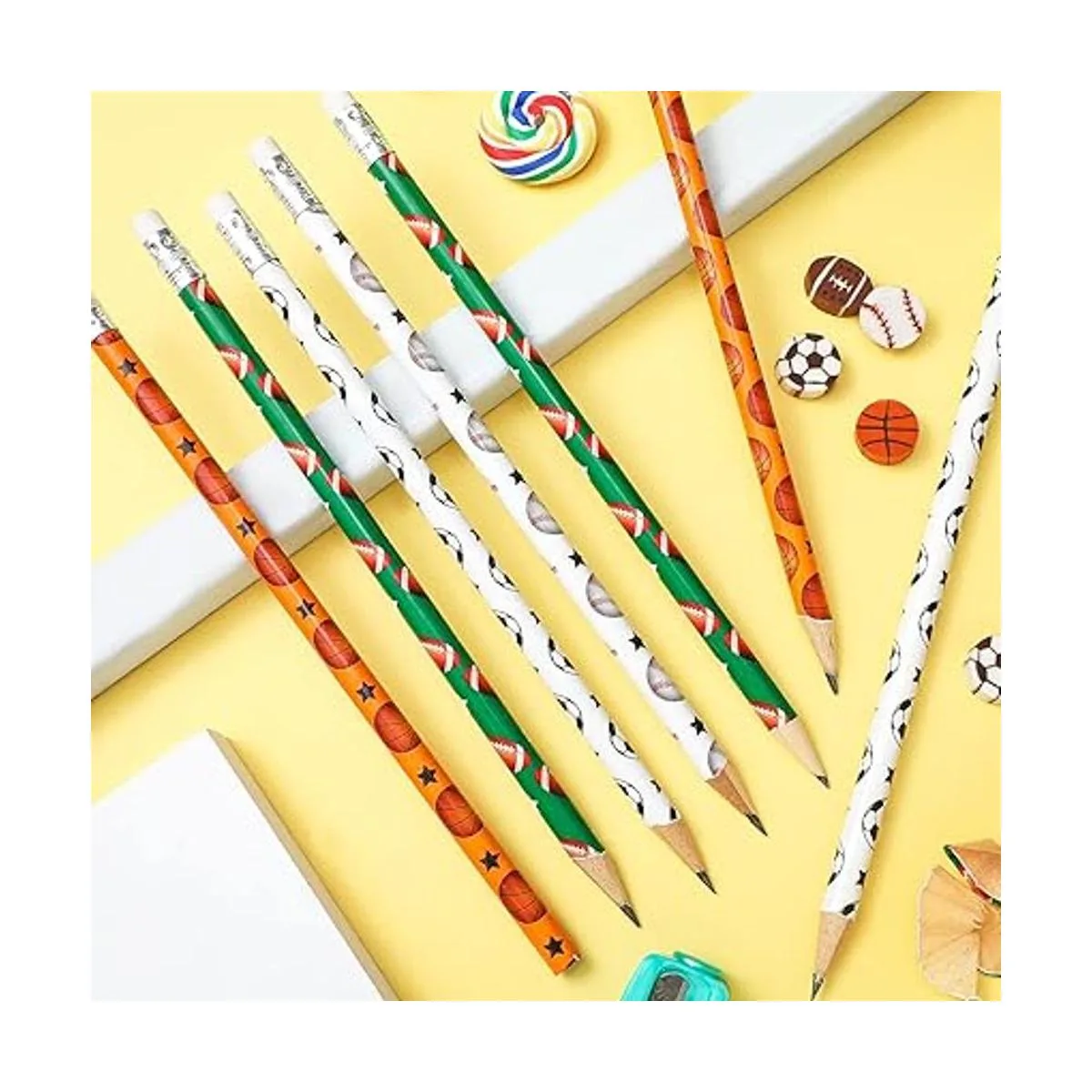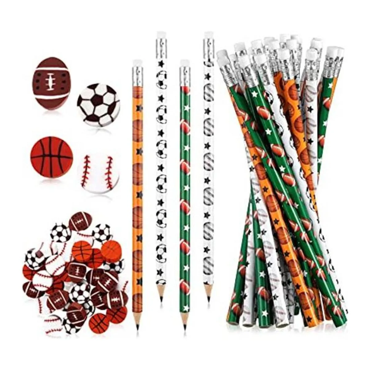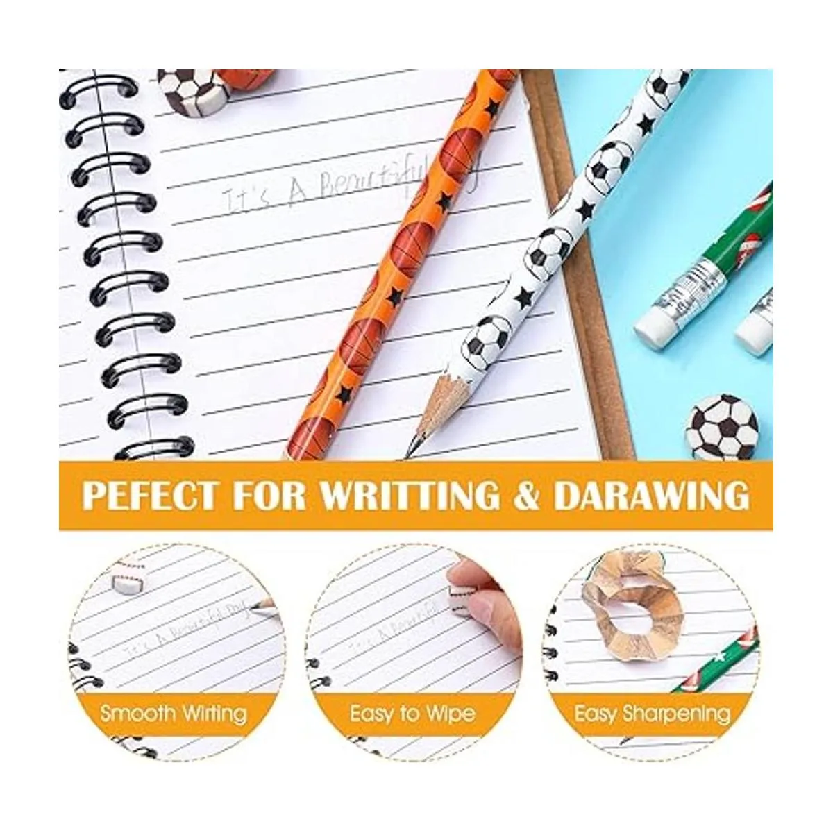 36 lápices deportivos y 36 borradores de bolas deportivas, divertidos lápices de madera con borrador deportivo para niños, recuerdos de fiesta de cumpleaños, suministros escolares de oficina deportes