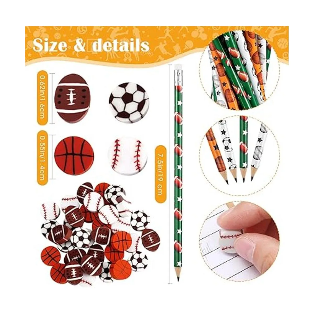 Amplias aplicaciones: estos lápices y borradores con temática deportiva son adecuados para profesores y estudiantes, que se pueden aplicar como regalos de cumpleaños, premios de clase, sorteos de la suerte, recompensas de carnaval o regalos de fiesta para añadir un ambiente animado