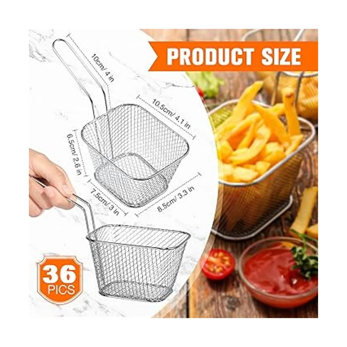 36 mini cestas cuadradas para freír con asa, soporte cromado para freír francés, cesta de presentación de alimentos, cesta de patatas fritas, herramienta de cocina de patatas para servir mesa de alimentos, filtración de residuos de aceite