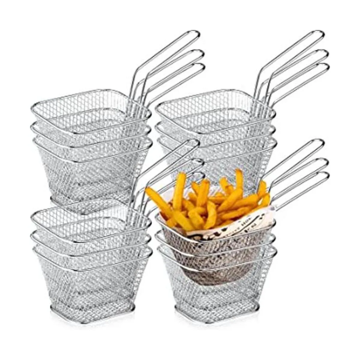 Resistente y fiable: la pequeña cesta para freír está formada por acero cromado de calidad, resistente y útil, no se rompe ni deforma fácilmente, resistente a la corrosión, al calor y al óxido, lo que puede satisfacer tus necesidades de decoración a largo plazo. Nota: el producto no es adecuado para freír