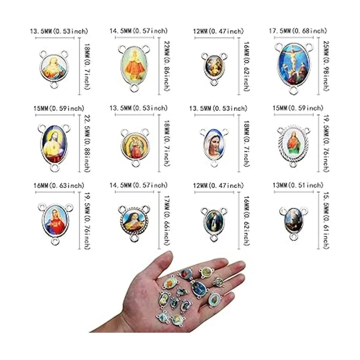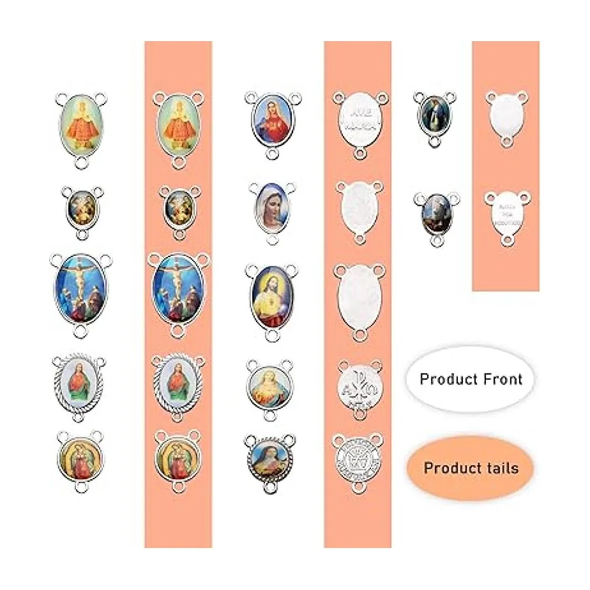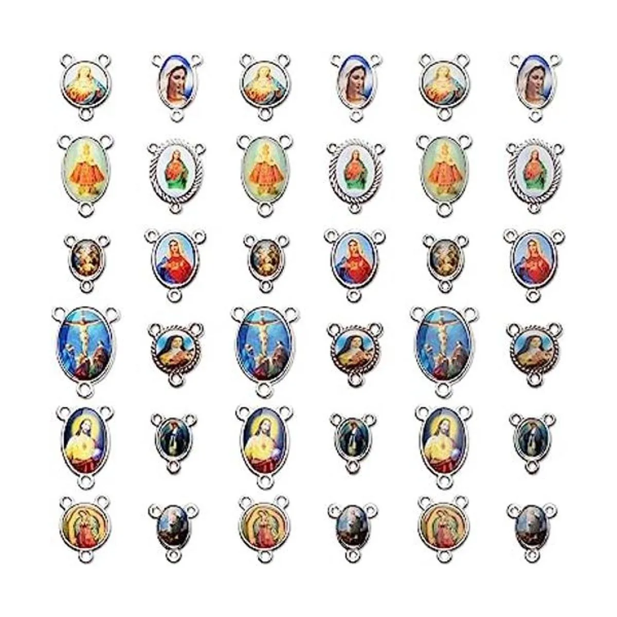36 piezas de aleación mixta con diseño de crucifijo de Jesús, cruz de la Virgen María Nuestra Señora Milagrosa conector de medalla de rosario para el día de la madre para hacer joyas, collares, pulseras, suministros de manualidades