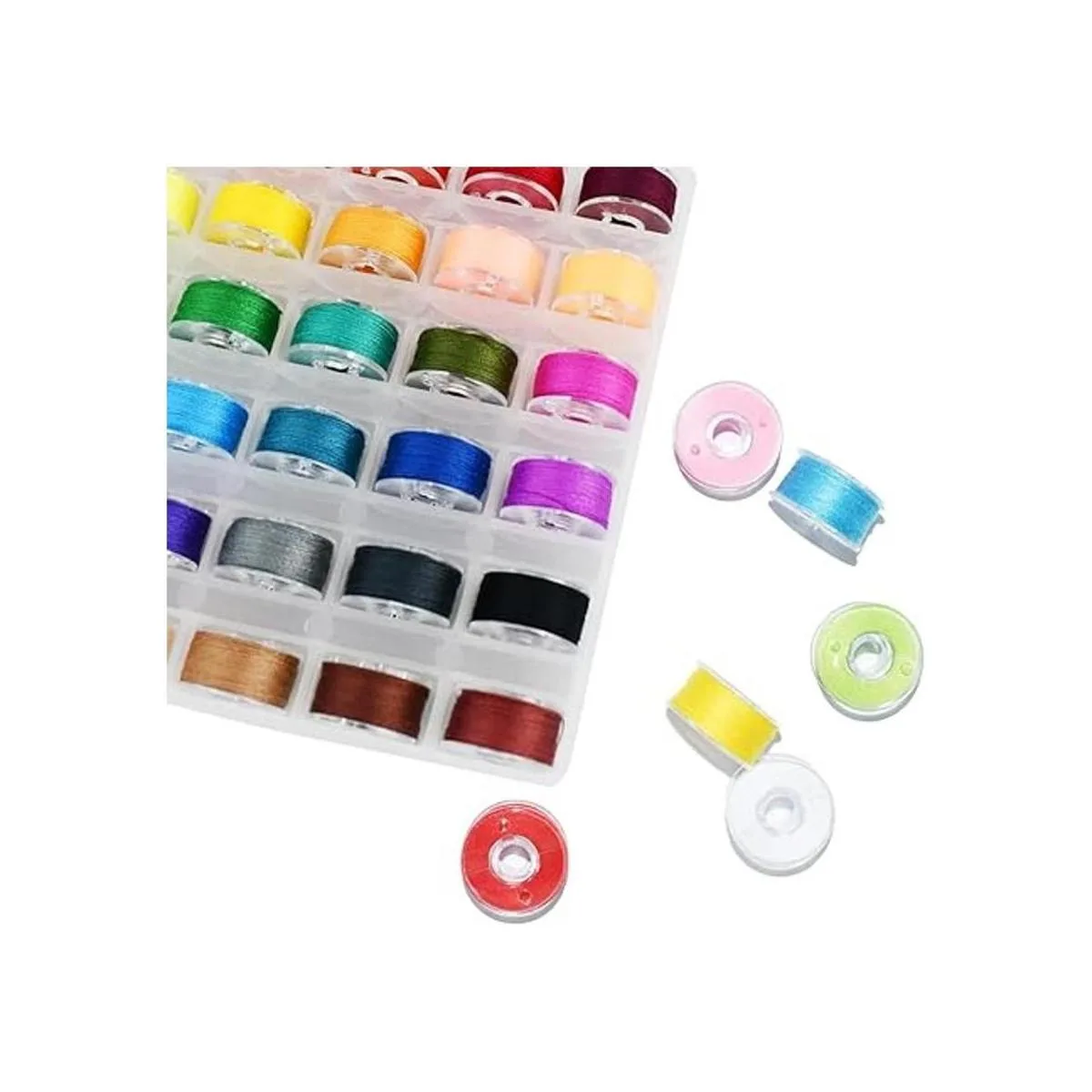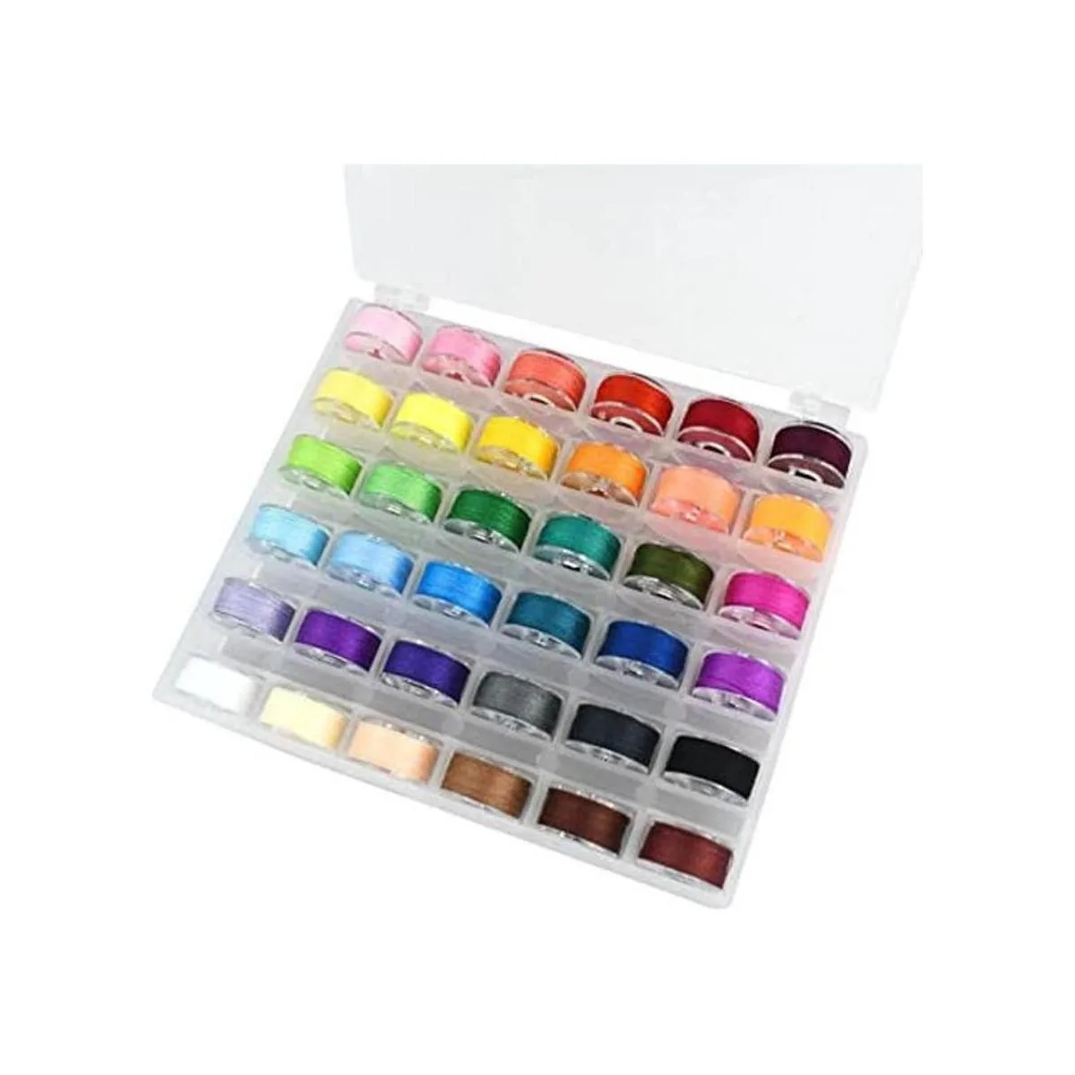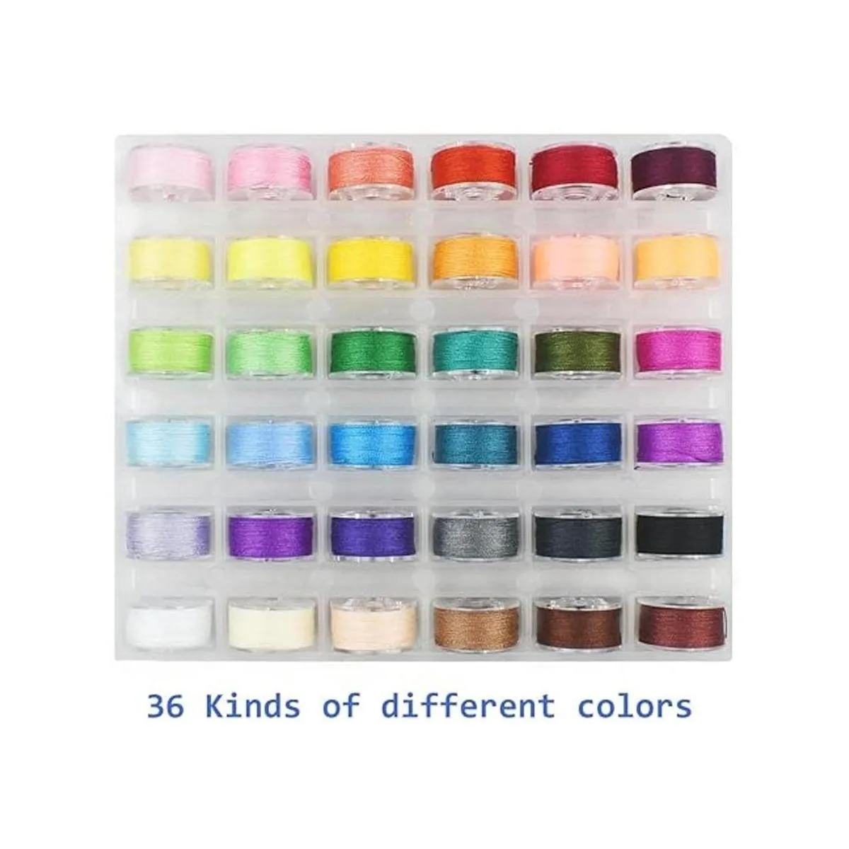 Colores surtidos: cada juego tiene 36 bobinas con 36 tipos de hilos de costura de bobina de diferentes colores, multicolor, suficiente para tus necesidades diarias de bordado y costura. Un buen producto que debe colocarse en el lateral de su máquina de coser