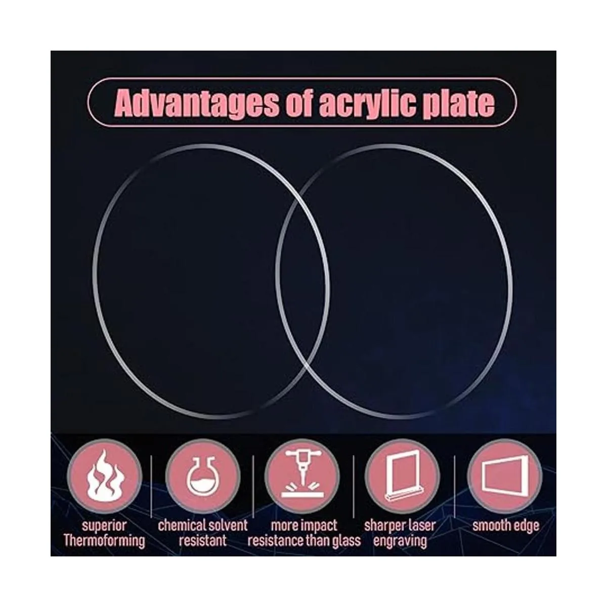 Bonitas características: estos discos acrílicos son adecuados para una variedad de aplicaciones, ya sea en interiores o exteriores; el material acrílico duradero también otorga a estos discos en blanco una alta resistencia al impacto, alta resistencia a los rayos UV y al calor con un punto de fusión de 320 grados Fahrenheit