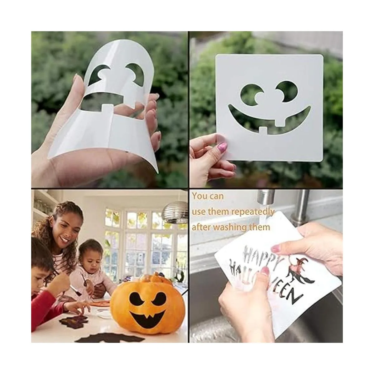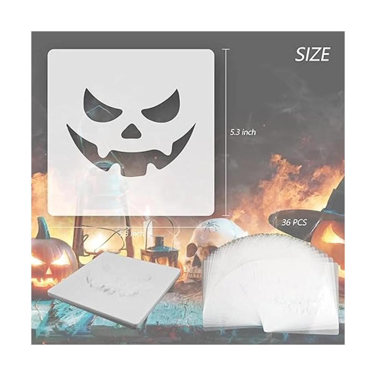 36 plantillas de dibujo de Halloween, 6 pulgadas de plástico reutilizable, plantillas de pintura de caras de calabaza para bricolaje tallado de calabaza, madera, paredes y decoración de Halloween
