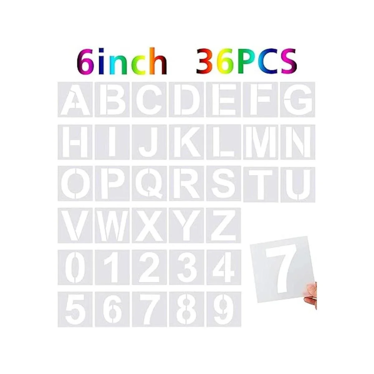 Consejos: el tamaño del marco de la plantilla es de 6 x 6 pulgadas, y el tamaño de la letra y el número es de 5.5 x 5.5 pulgadas, lo que es adecuado para tu uso diario. Si no estás satisfecho con nuestras plantillas para pintar sobre madera, por favor ponte en contacto con nosotros por correo electrónico. Nuestro objetivo es proporcionar a los clientes los mejores productos y servicios.