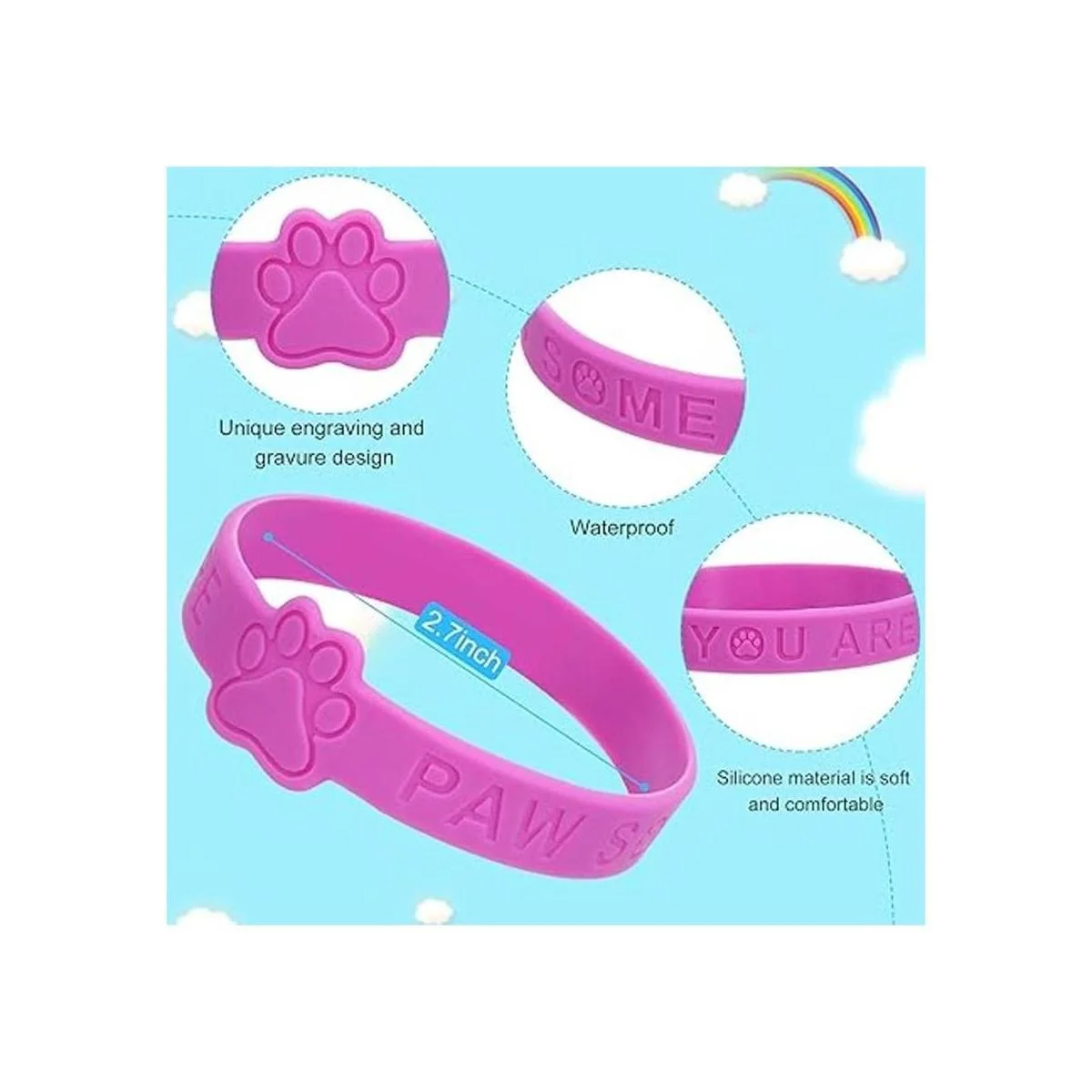 Diseño temático de huellas de patas: estas pulseras de patrulla de perros están temáticas con huellas de patas, y hay un bonito logotipo de huella y el texto pata algunos tú en cada pulsera; también puedes escribir libremente en esta pulsera temática de animales para que sea más colorida y personalizada, más adecuada para actividades de jardín de infantes y fiestas de verano, que será apreciado y amado por niños y jóvenes