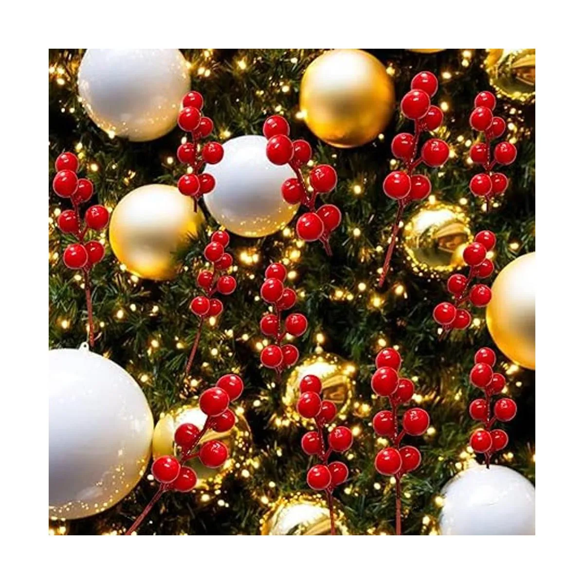 Fácil de decorar: las ramas se pueden doblar al azar. Las bayas se pueden rasgar de las ramas. Se pueden utilizar para adornar tu hogar, coronas de Navidad, envoltura de regalos, árboles de Navidad, etc. También se pueden aplicar a arreglos florales o bricolaje. Pueden crear el ambiente festivo para tus actividades