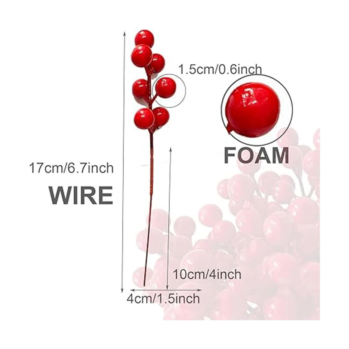 Material de calidad: las bayas están hechas de bola de espuma de alta calidad y alambre de hierro, color brillante, superficie lisa y ligera.