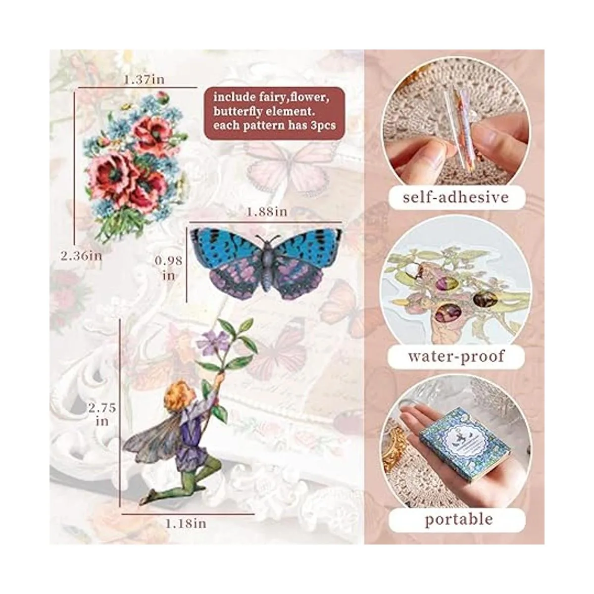 360 calcomanías de hadas de flores, suministros de álbumes de recortes vintage, calcomanías transparentes de flores de mariposa, calcomanías decorativas para álbumes de recortes, diario de chatarra, planificador de manualidades, regalo
