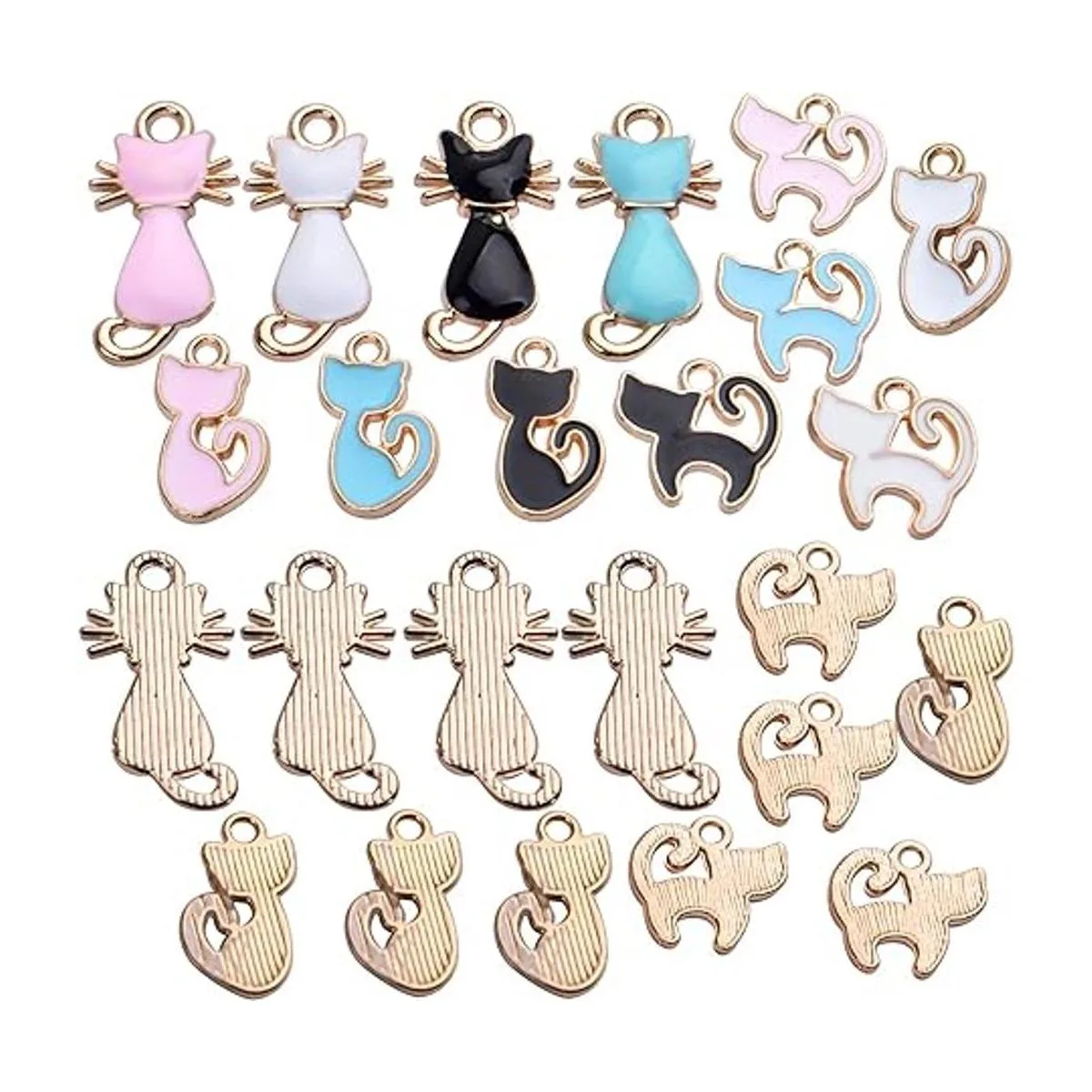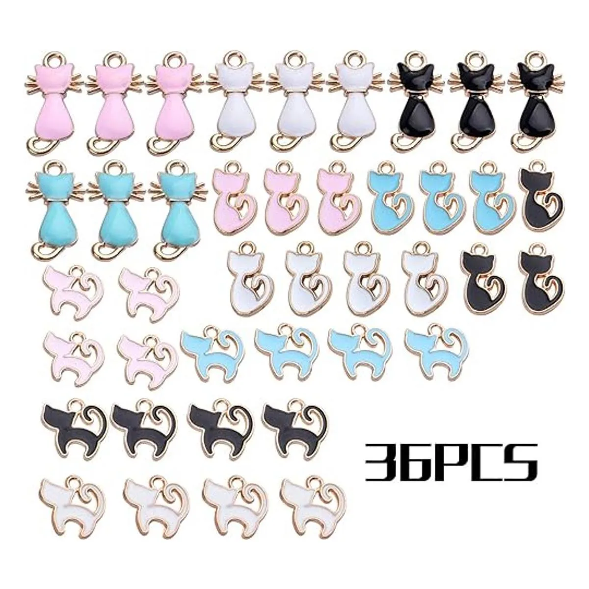 36pcs esmalte gato encanto colgante lindo encantos para hacer joyería DIY collar pulsera pendiente, 3 estilos