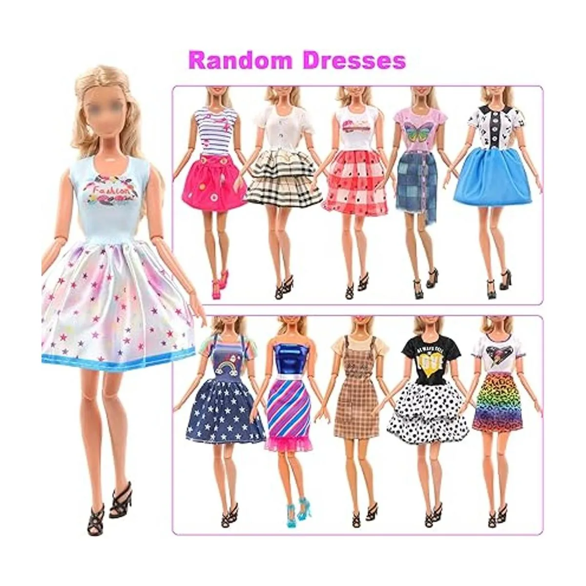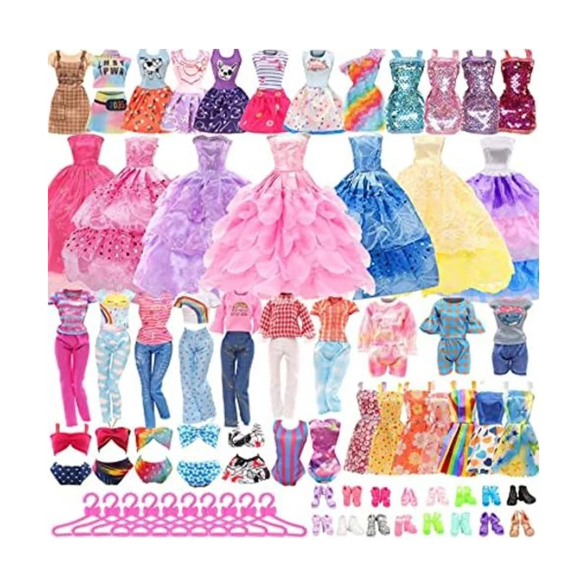 Package Includes: 22 pack doll clothes and accessories 3 pcs fashion dresses 4 pcs casual wear clothes 3 Pcs wedding gown dresses 2 sets bikini swimsuits 6 Braces Skirt 10 pcs shoes 10 Hangers for 11.5 inch Girl Doll Random style