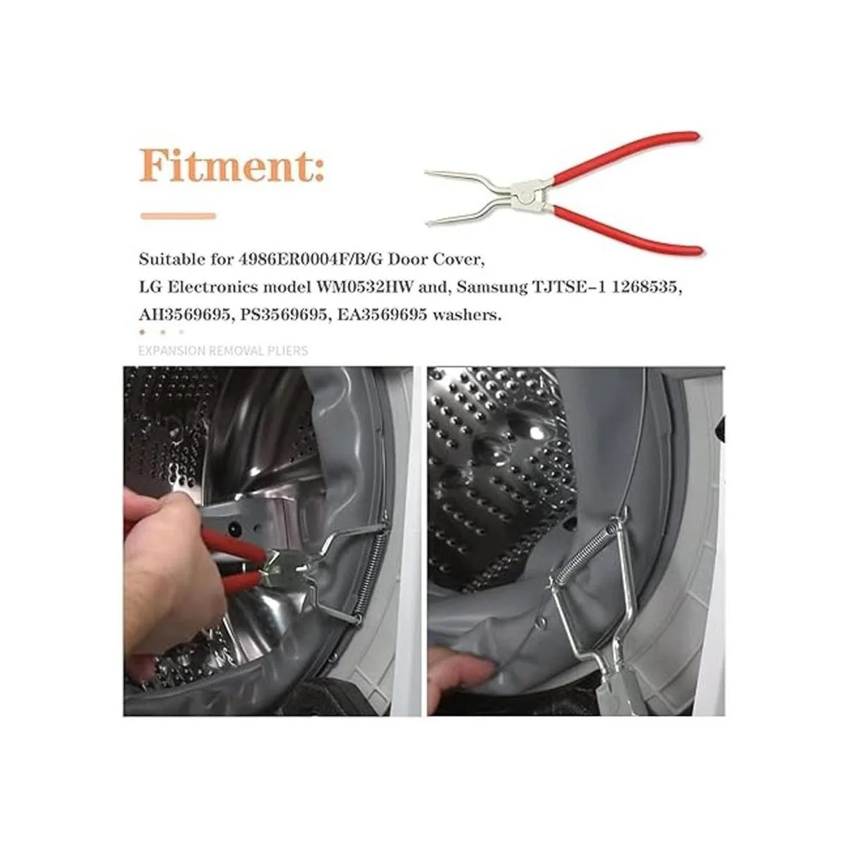 Package Included : 1PC Washing Machine Inner/Outer Spring Expansion Removal Tool.Warranty Service: Support One year free warranty service. Any problem, please feel free to contact us first.