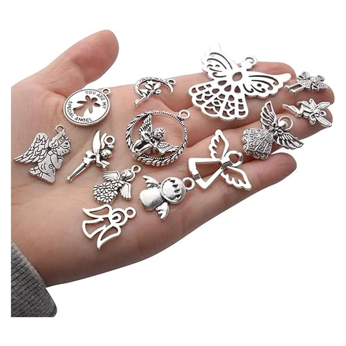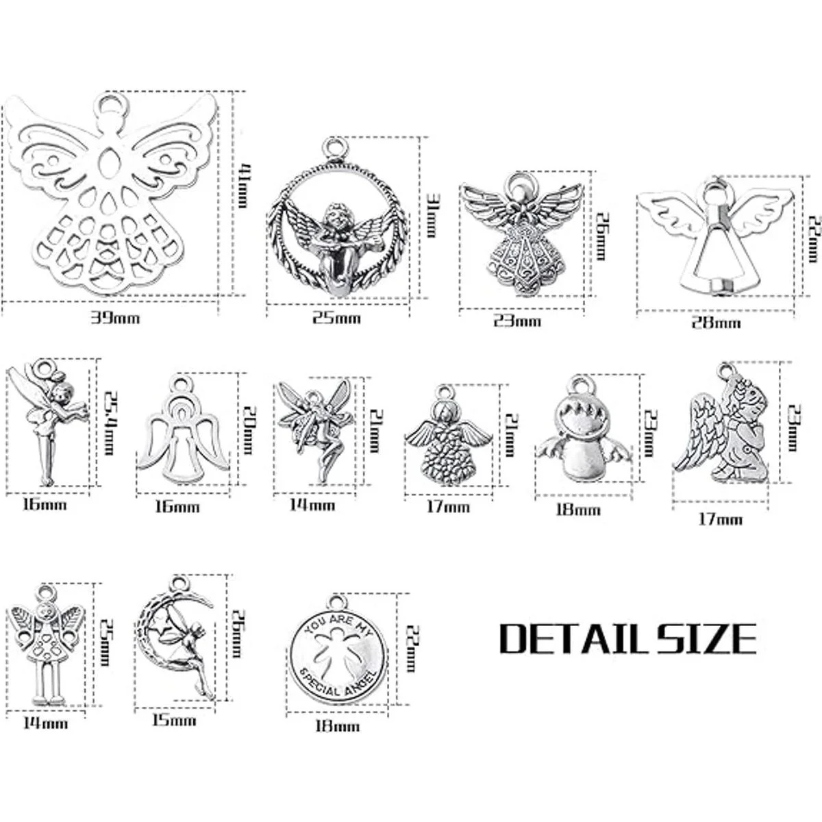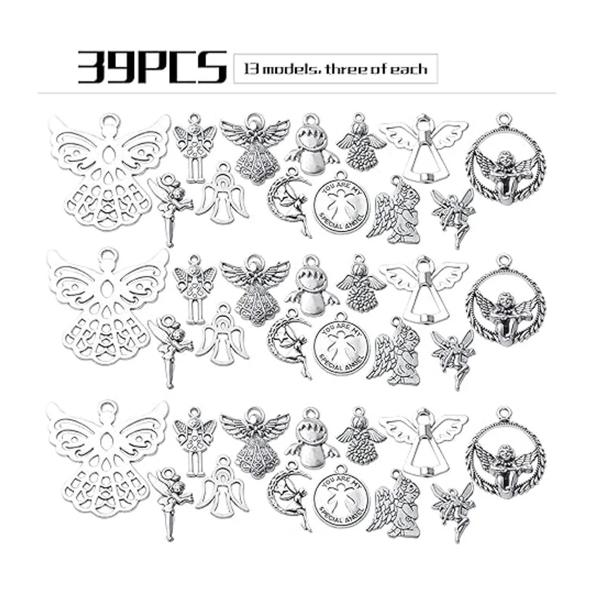39 colgantes de plata antigua de ángel de hadas de aleación de ángel encanto de artesanía suministros para joyería DIY pulsera collar artesanía fabricación hallazgo, 13 estilos