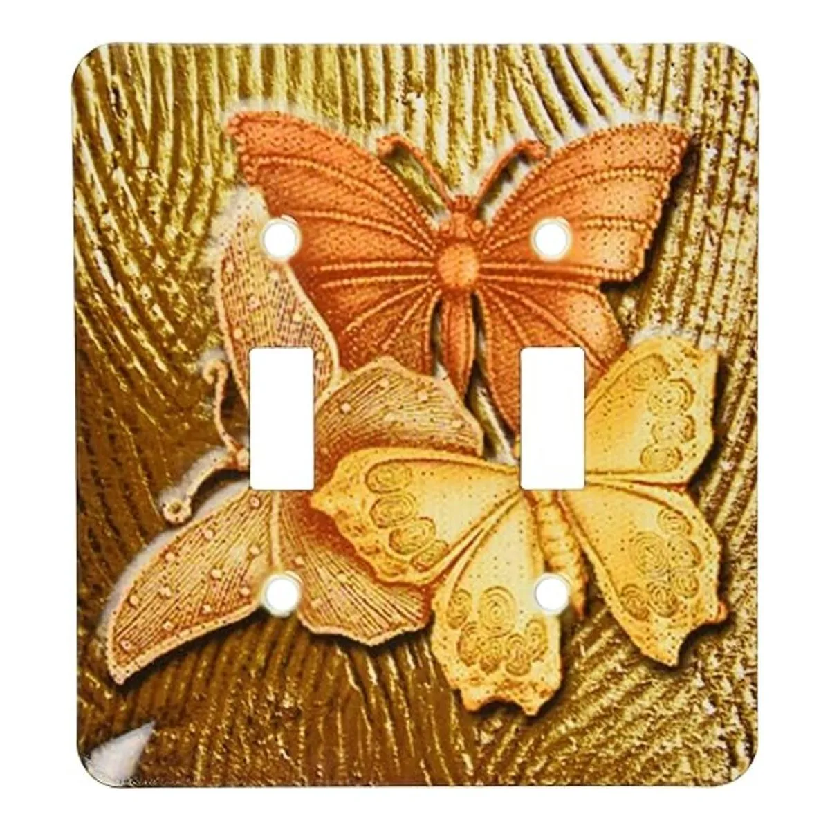 3dRose LLC 3dRose LLC LSP 128812 2 Oro Fondo gofrado con acentos y tres Bellas Mariposas en Golds, Yellows y cobre. Doble interruptor