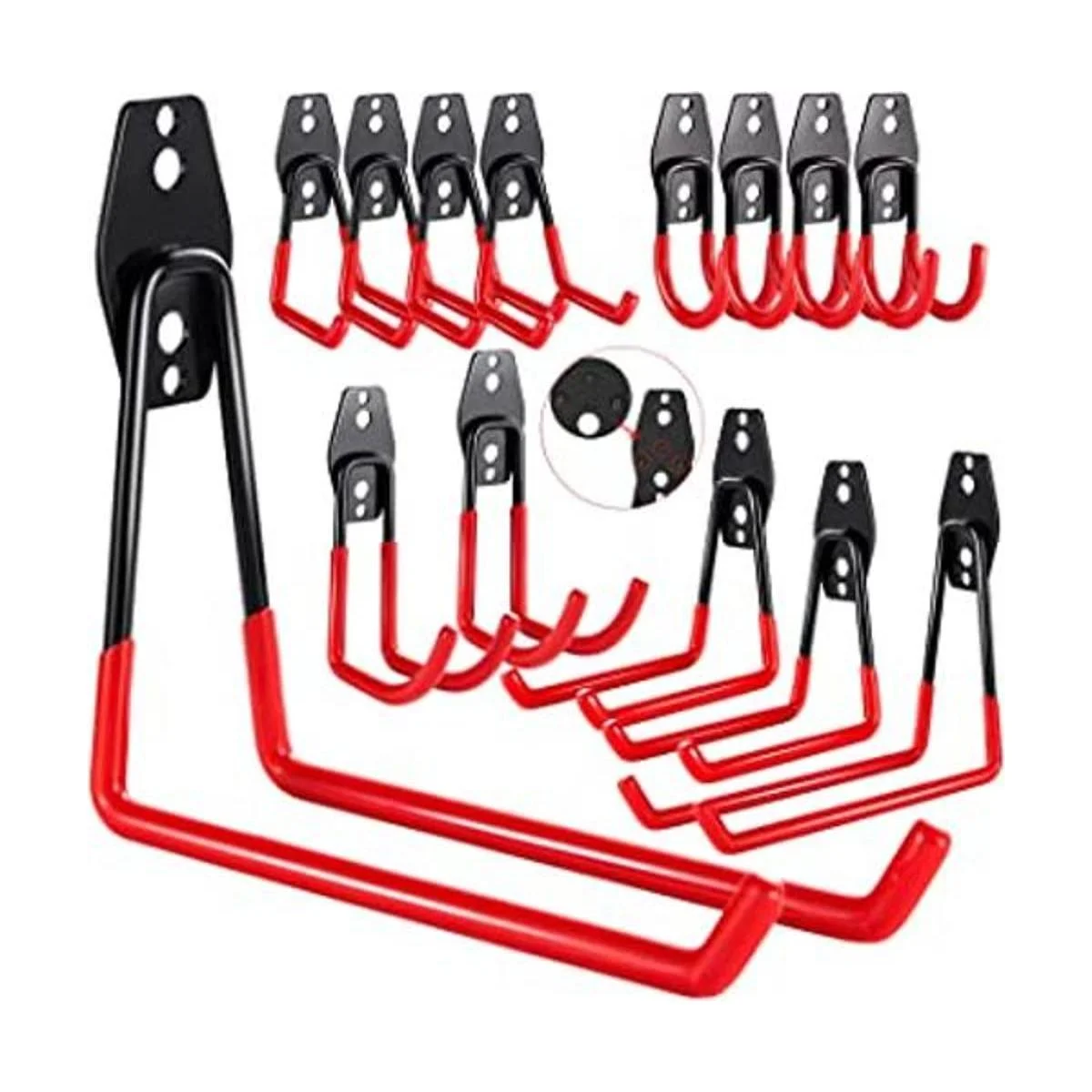3H Ganchos de almacenamiento de garaje, ganchos de pared de garaje, paquete de 14, ganchos de garaje con 3 puntos de soldadura para organizar bicicleta, escalera, bicicleta, silla, pala (rojo)