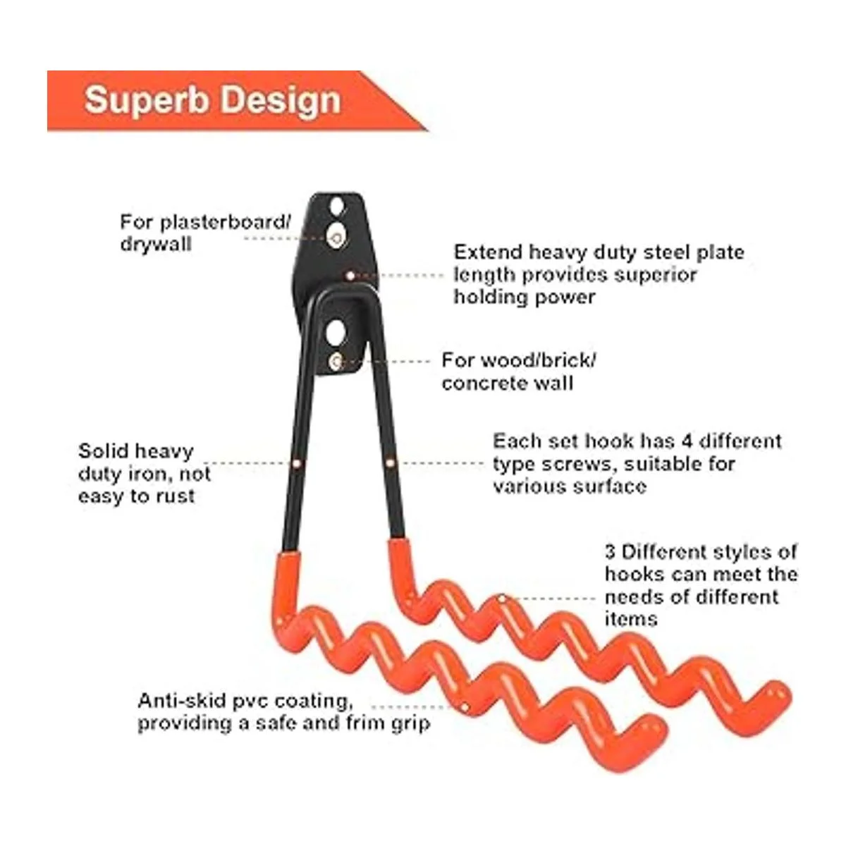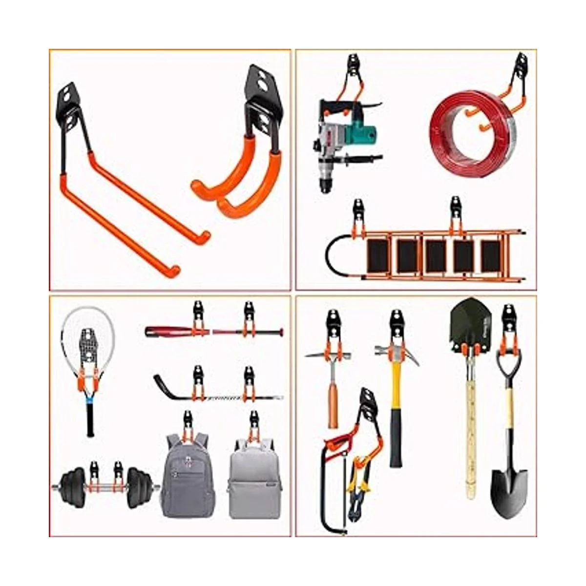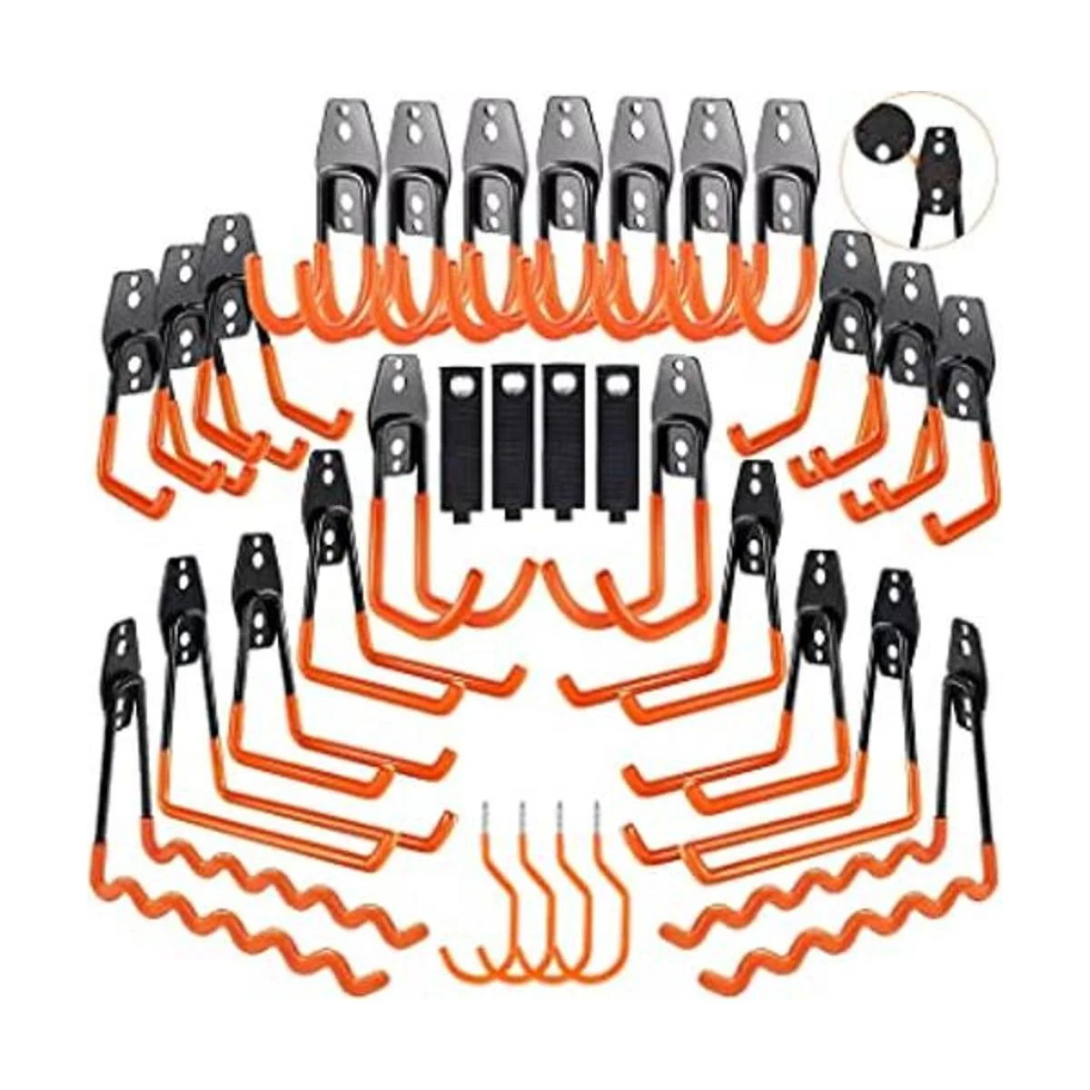 3H Ganchos de almacenamiento de garaje, organizador de herramientas de jardín, 31 unidades, ganchos de garaje para colgar escalera, silla, pala, comedor de malezas naranja
