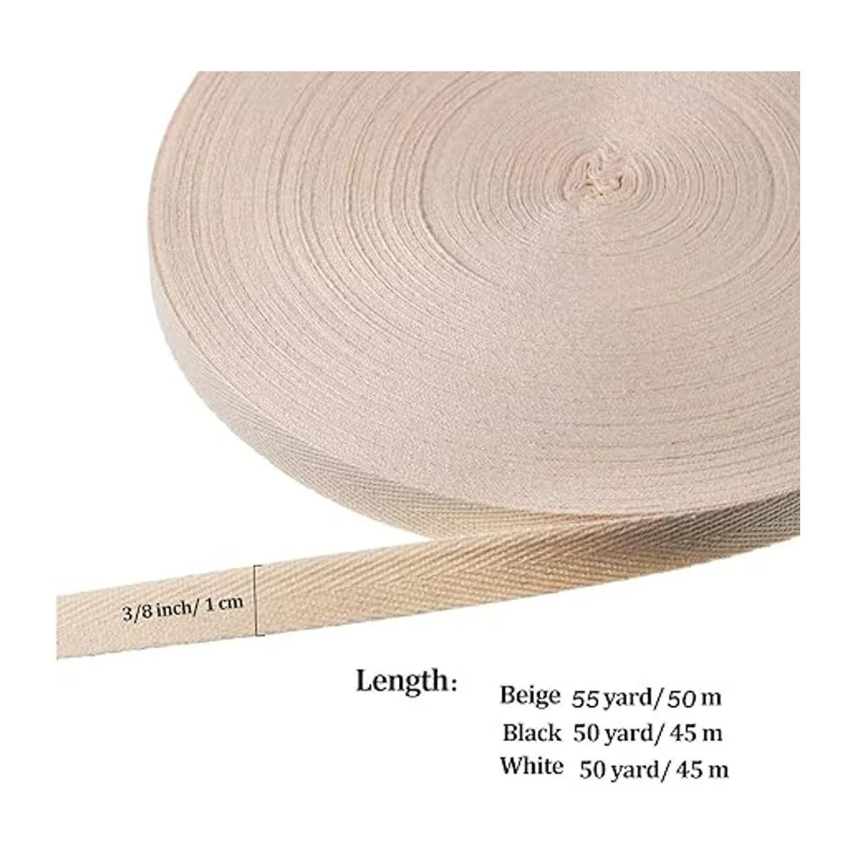 Contenido del paquete: recibirás un paquete de 3 rollos de cinta de sarga negra, blanca y beige con una longitud de 164.0 ft en beige, una longitud de 147.6 ft en blanco y negro, y un ancho de 0.4 in, suficiente para satisfacer tus diversas necesidades de producción y reemplazo de manualidades