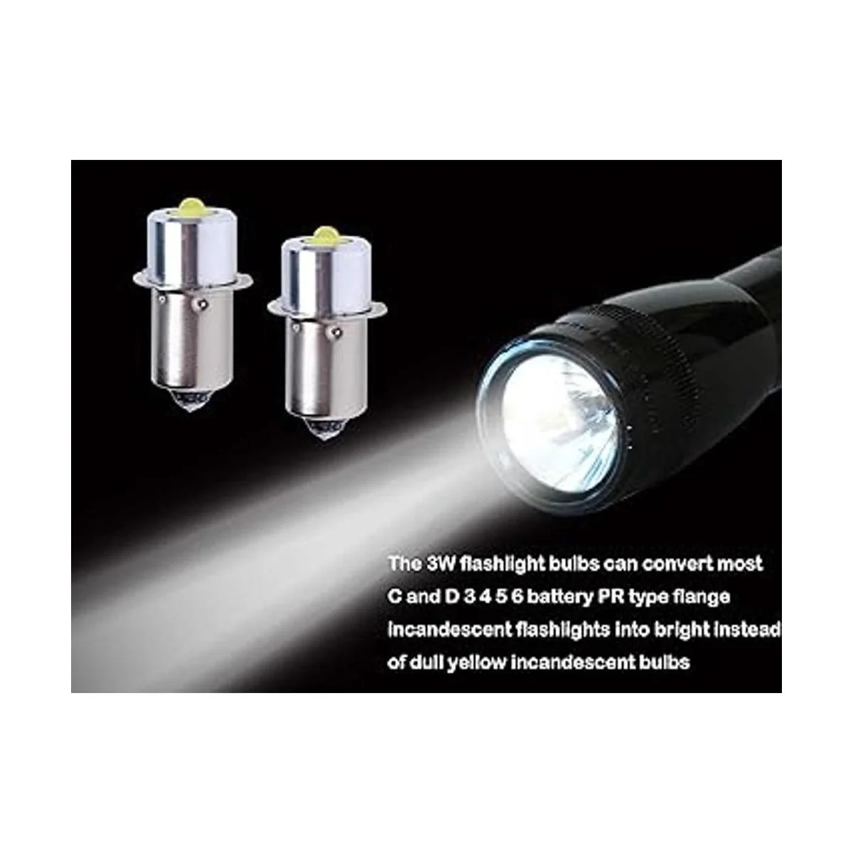 Gran función: las bombillas de linterna de 3 W pueden convertir la mayoría de las linternas incandescentes tipo C y D 3, 4, 5, 6 baterías PR en bombillas incandescentes brillantes en lugar de bombillas incandescentes amarillas apagadas