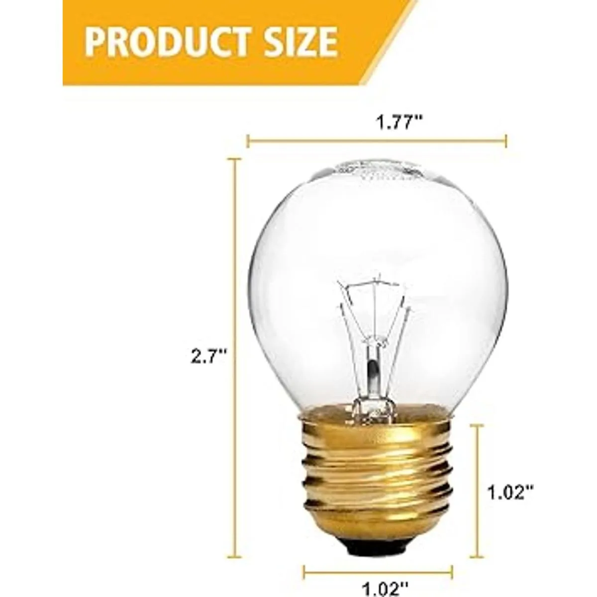 4 bombillas de horno de 40 W, bombillas de repuesto de electrodomésticos de 40 W para horno, nevera, microondas, base de latón estándar E27E26 de alta temperatura, bombilla de horno de 400 lúmenes, transparente G45