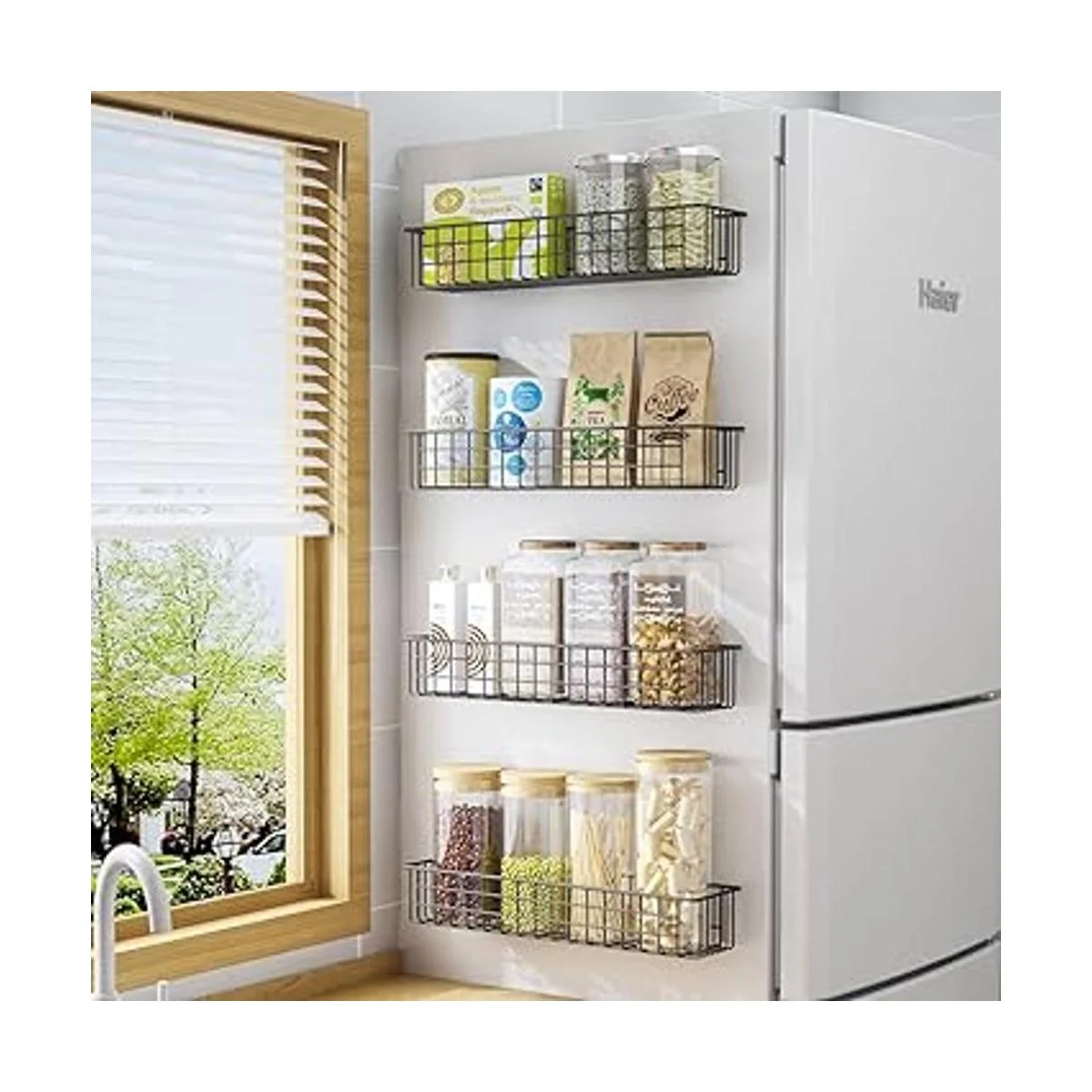 4 cestas magnéticas de almacenamiento para refrigerador, estante de especias con imán fuerte, estante de almacenamiento para refrigerador, ideal para cocina y despensa