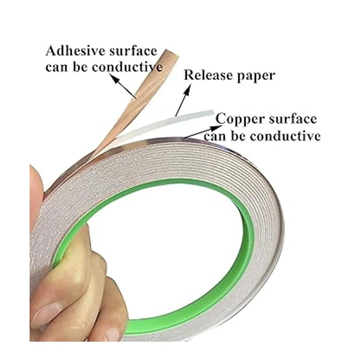 Cinta de lámina de cobre puro con adhesivo conductor de doble cara para blindaje EMI, cavidad de guitarra, suministro de vitrales, circuitos de papel, conductor eléctrico para soldadura, transformador, teléfono celular, computadora, PDA, PDP, y monitor LCD, PC, copiadora, etc