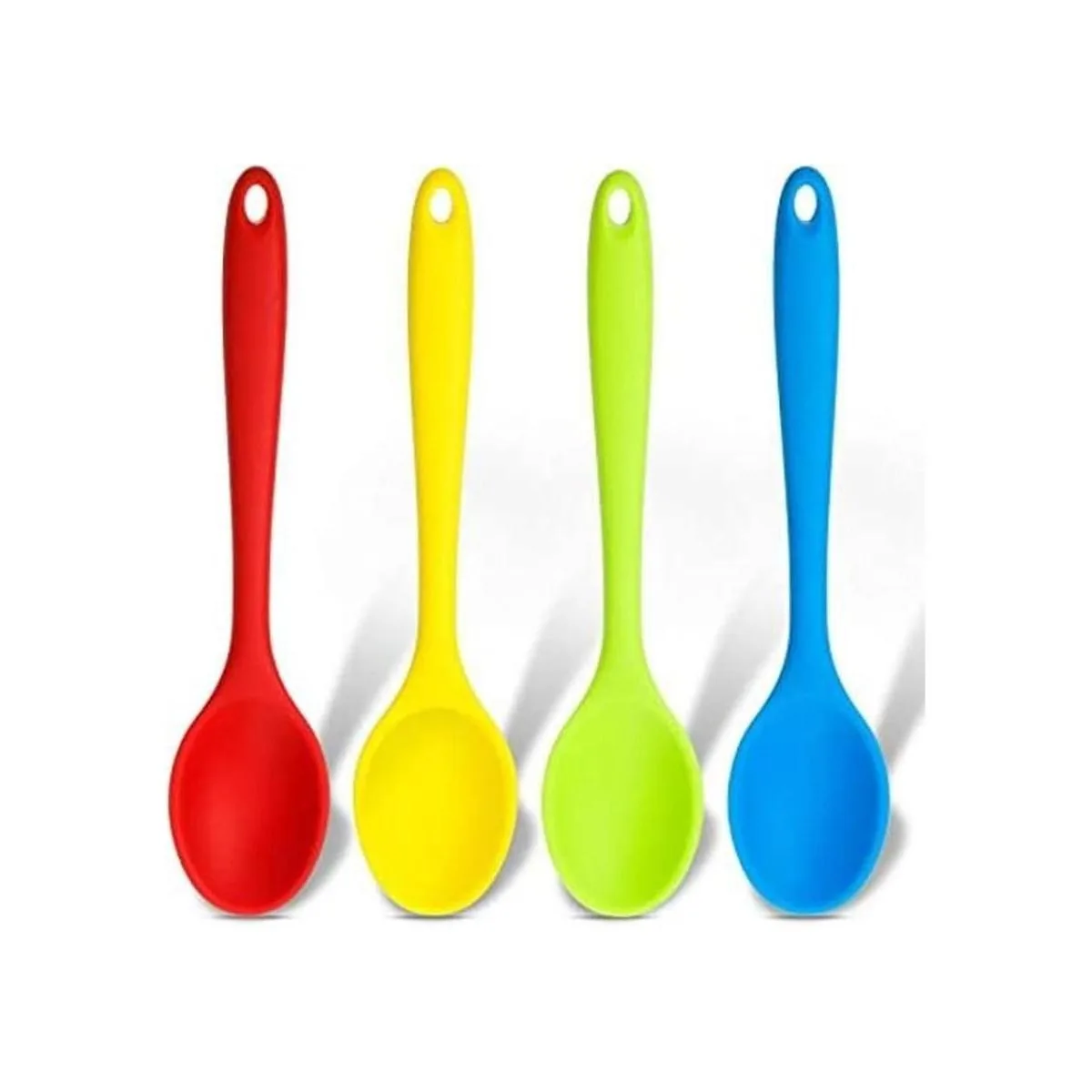 4 cucharas pequeñas de silicona multicolor antiadherentes cuchara de cocina de silicona para servir, cuchara de agitación, para cocina, hornear, herramientas de mezcla rojo, verde, amarillo, azul