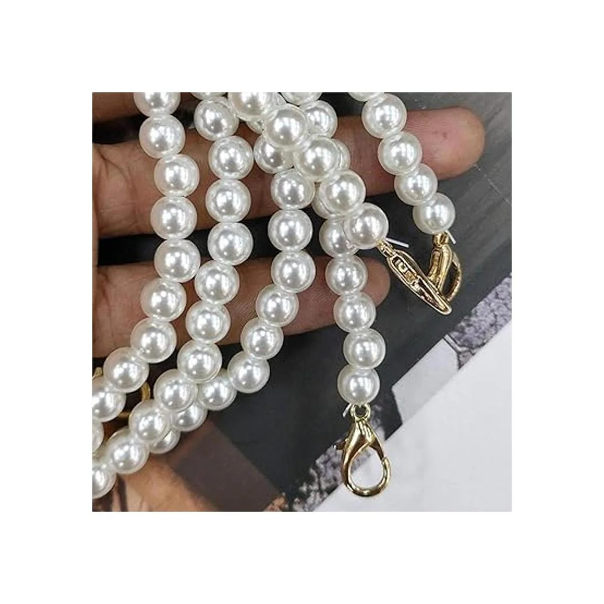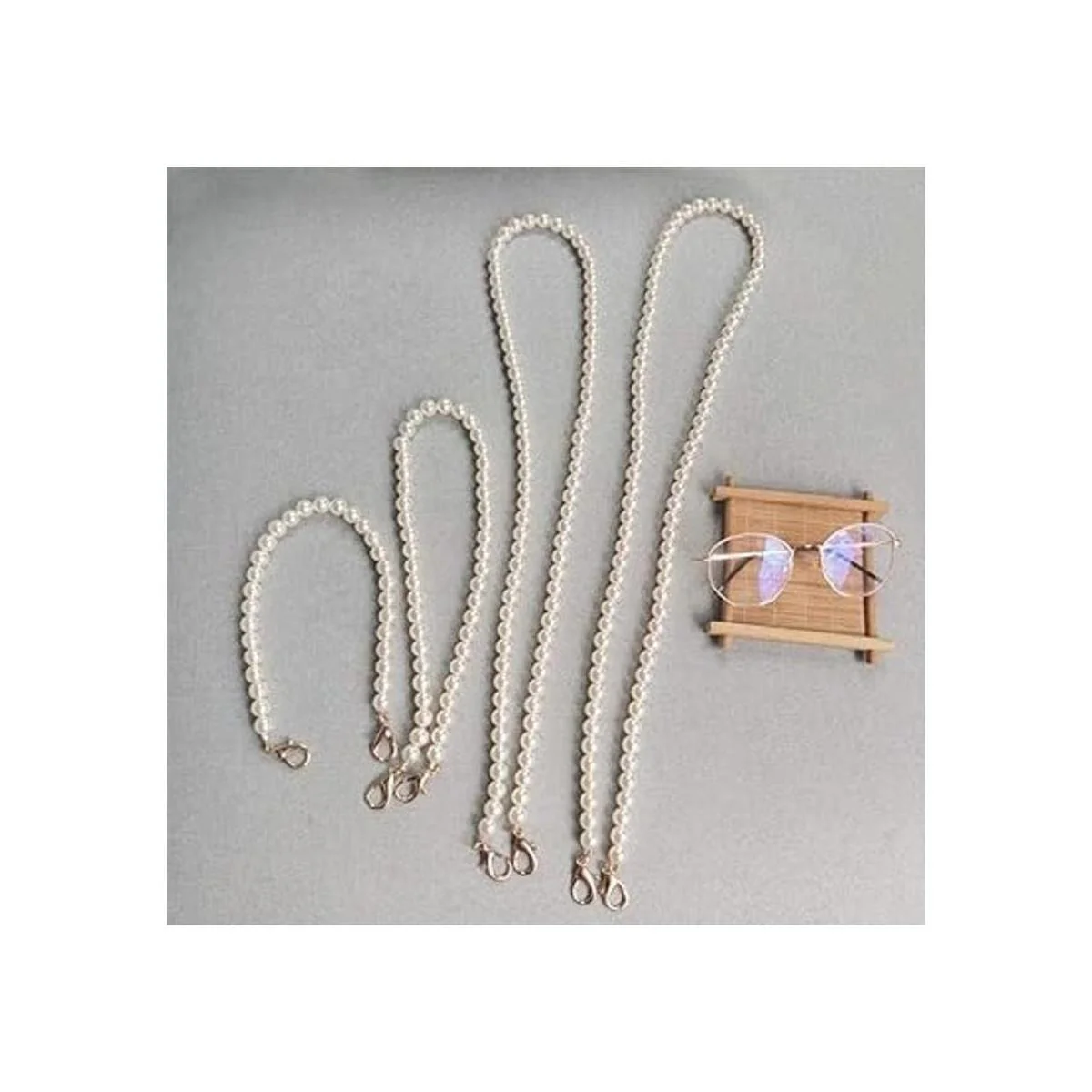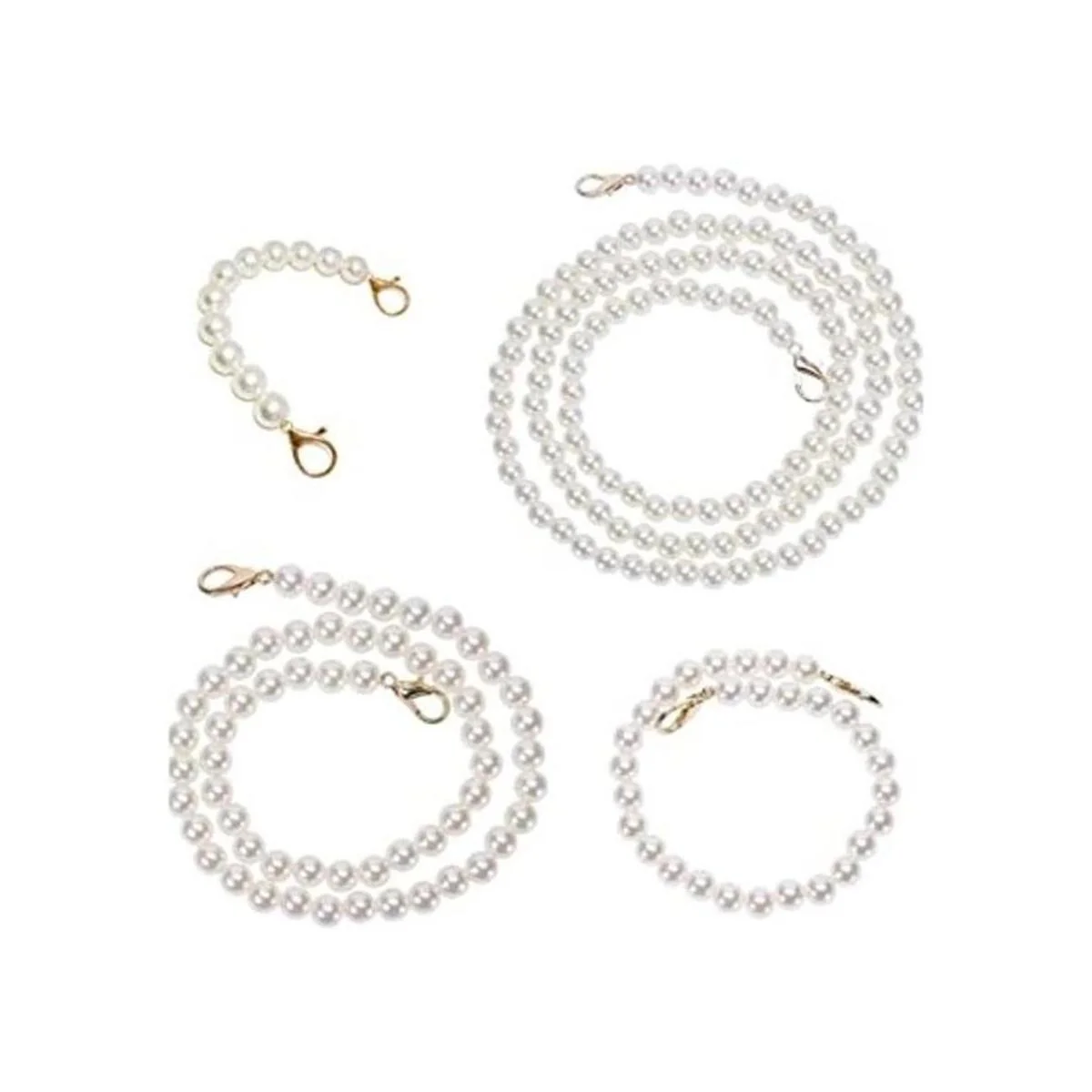 Paquete: el paquete incluye 4 correas de cadena de perlas de repuesto en 4 longitudes diferentes.