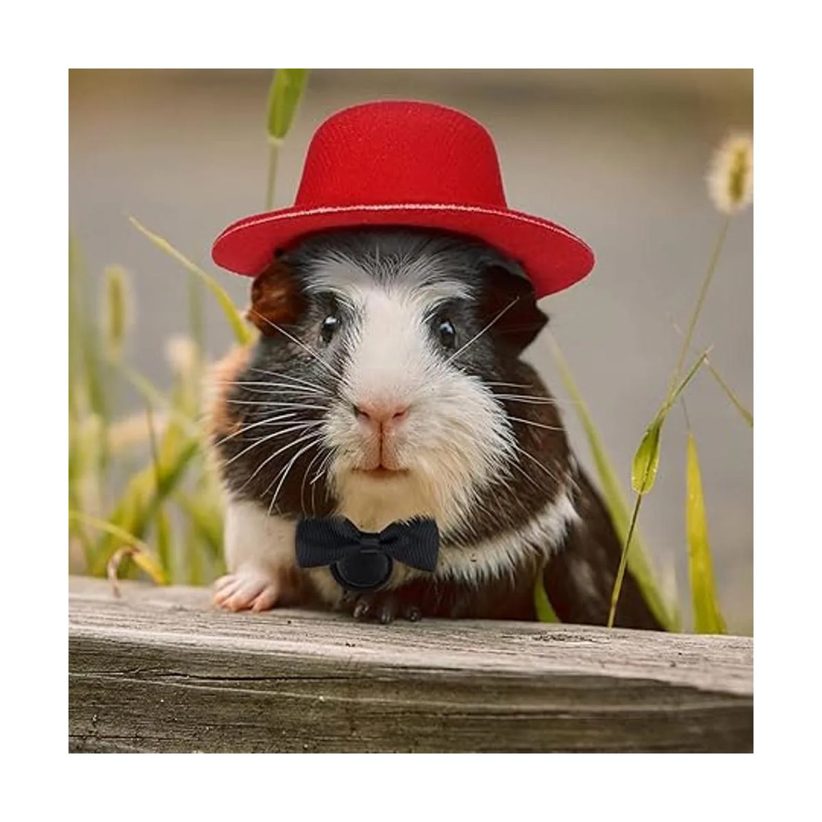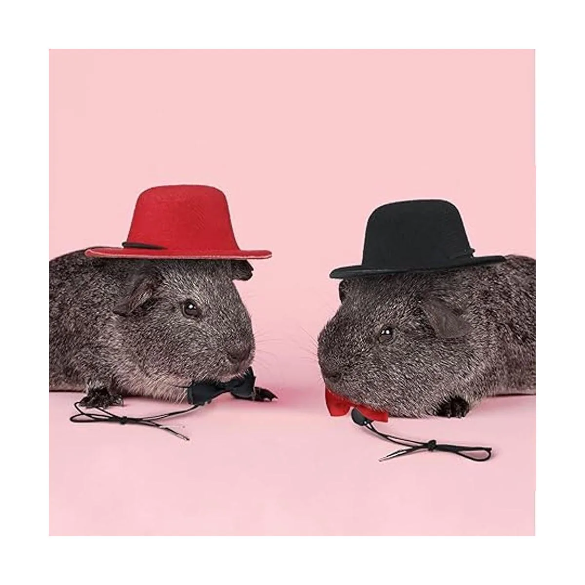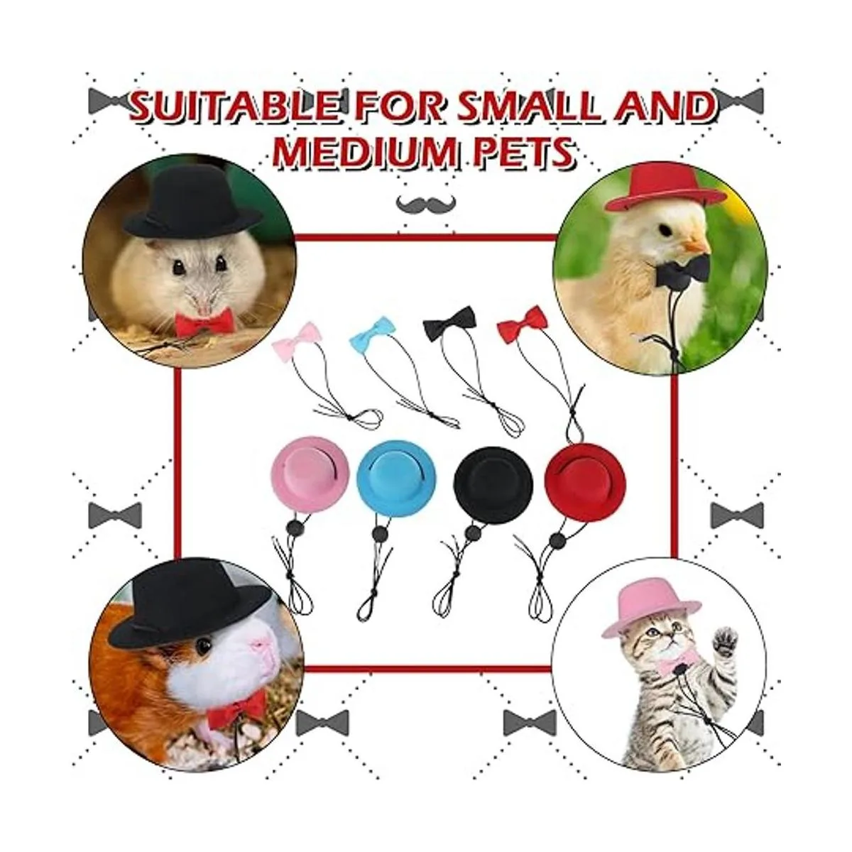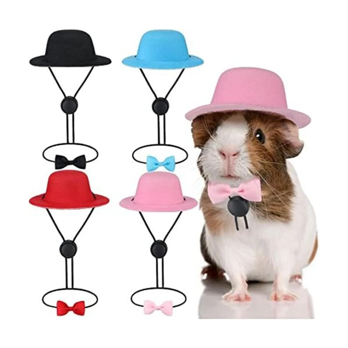 4 juegos de 8 piezas de ropa de conejillo de indias, pajaritas de animales pequeños, sombreros para mascotas, traje de cosplay Cool Kawaii para mascotas, sombrero negro para hámster, hurón, ratas, cachorro, gatito, erizo, dragón barbudo
