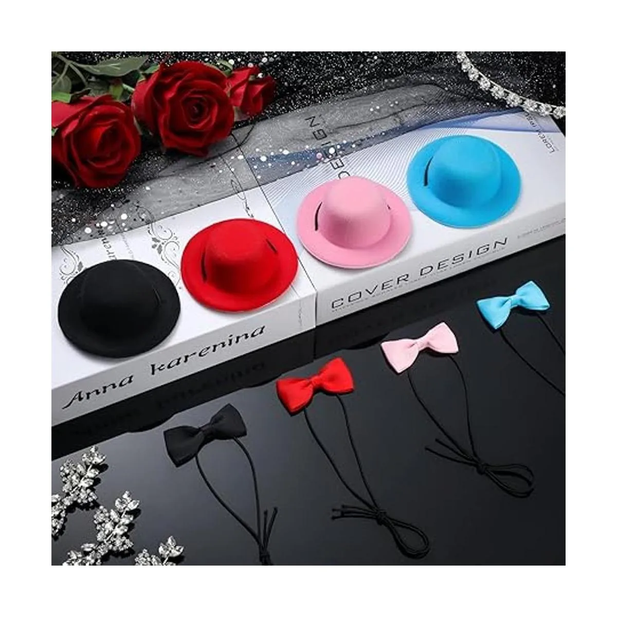 Bonito sombrero para mascotas y pajarita: el paquete incluye 4 juegos de sombreros de animales pequeños para mascotas, incluyendo 1 sombrero negro, 1 pajarita roja, 1 sombrero rojo, 1 pajarita negra, 1 sombrero rosa, 1 pajarita rosa, 1 sombrero azul, 1 pajarita azul, 1 pajarita azul, cantidad suficiente y color para satisfacer las necesidades decorativas de tu mascota