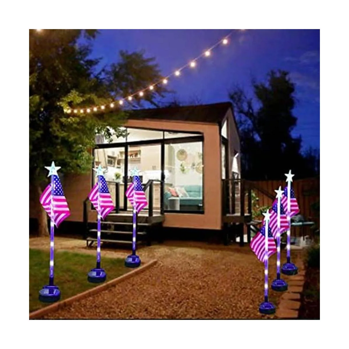 4 luces de bandera estadounidense de Navidad, 4 de julio, luz solar patriótica para césped, luz LED de estaca para jardín, luz de camino para decoración del Día de la Independencia estrella que cambia de color