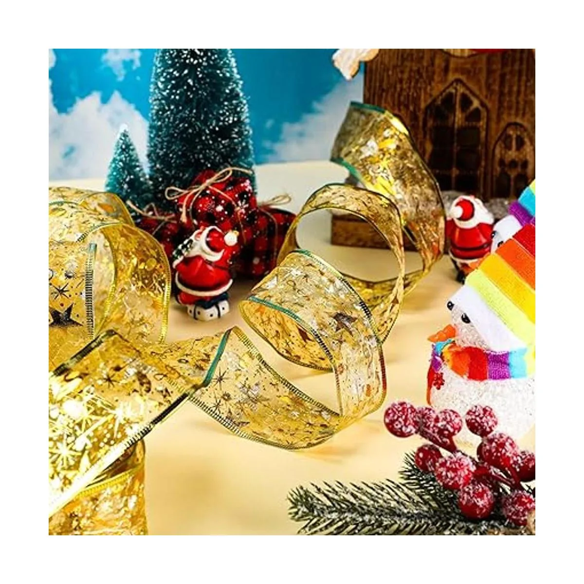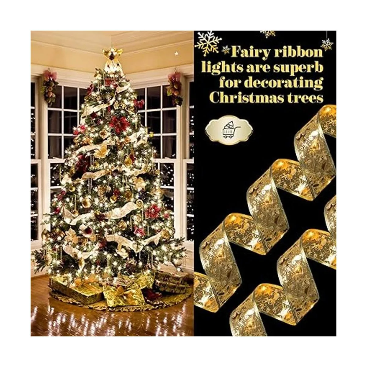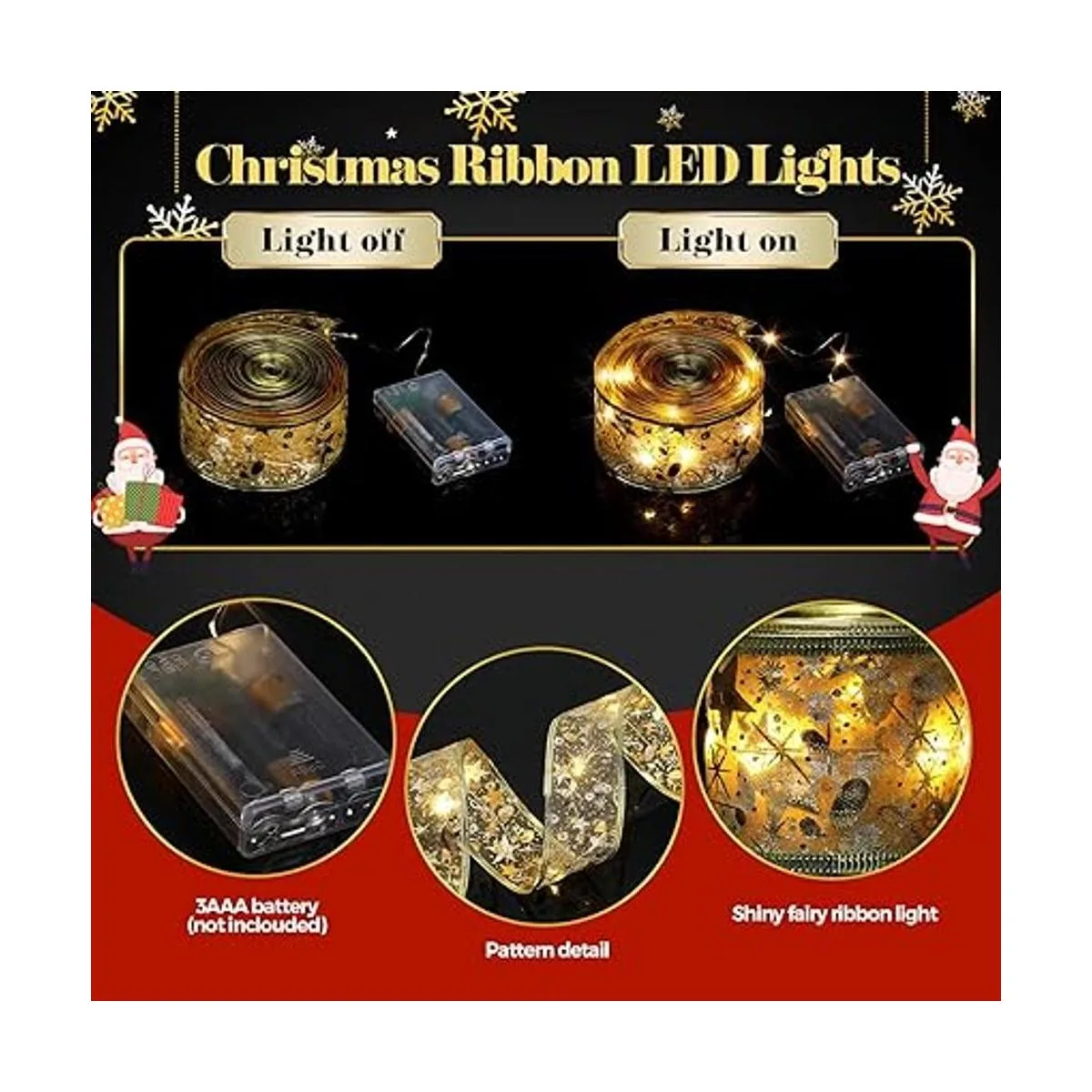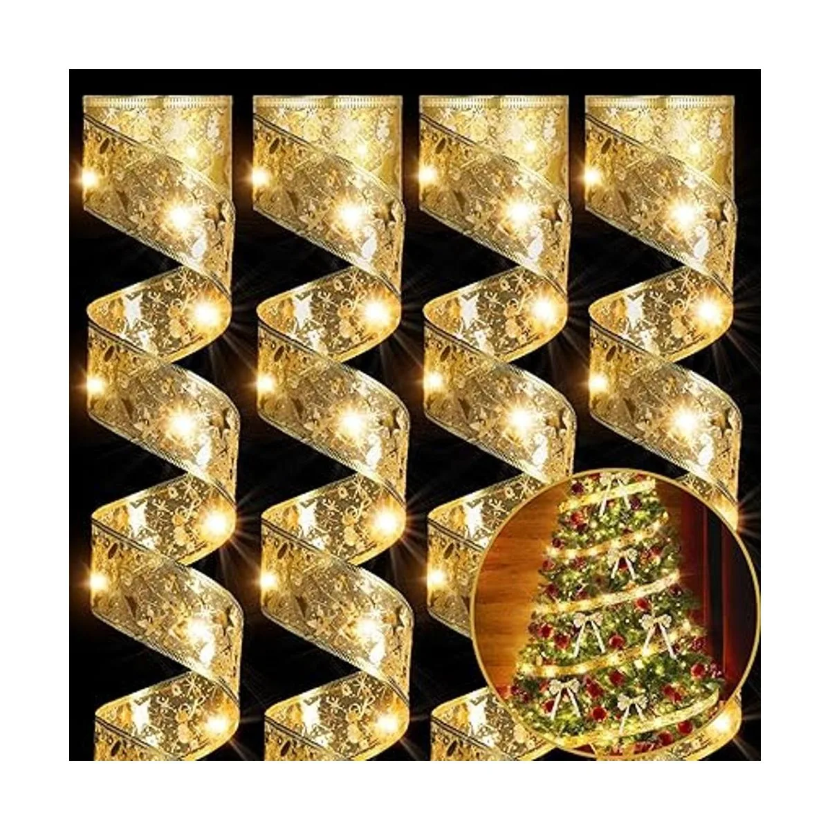 Seguro y fiable: nuestra cinta iluminada para árbol de Navidad está hecha de cinta de gasa de calidad con alambre de cobre en el interior, ligera pero firme de usar, puede servirte durante mucho tiempo; impresa con hermosos patrones en doble cara, te traerán un buen disfrute visual y una experiencia de uso agradable