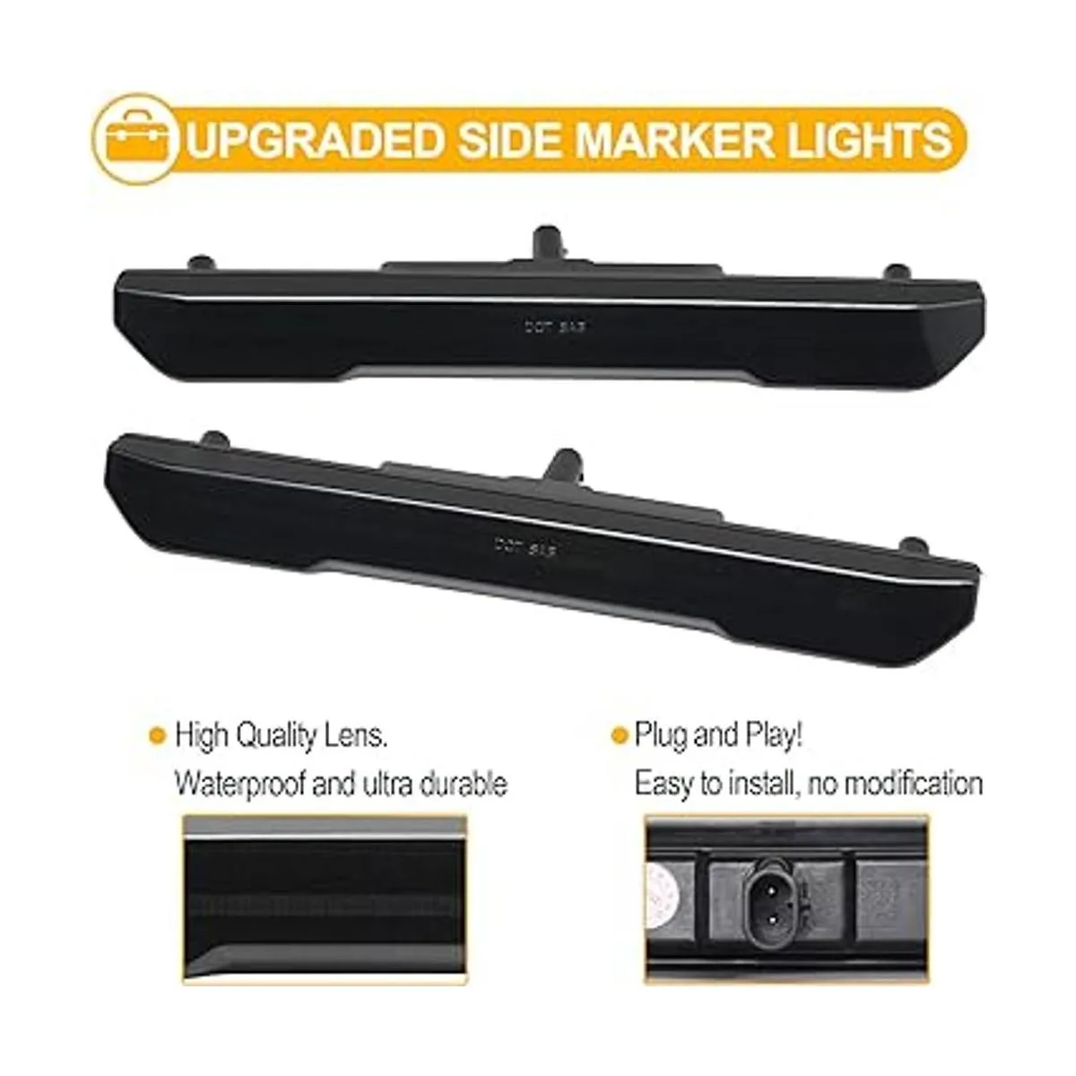 Alta calidad: 100 legal en la calle, certificado DOT, certificado SAE. La lámpara LED de marcador lateral está hecha de plástico policarbonato antiarañazos Chips LED de alta potencia con una salida de iluminación súper brillante