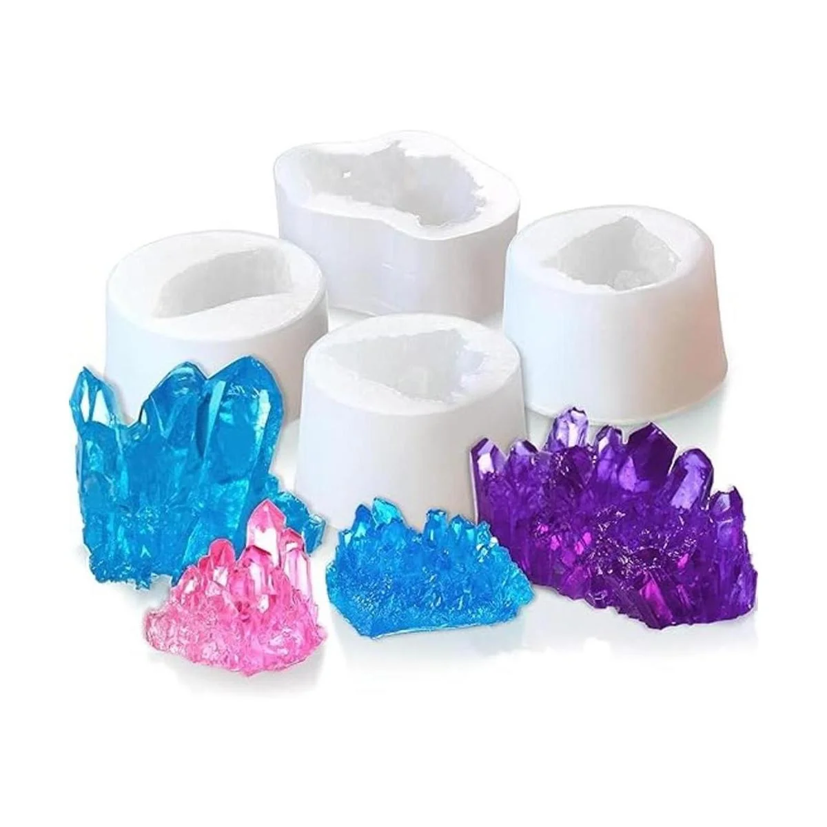 4 moldes de cristal de resina de silicona de resina de cristal moldes de cuarzo de roca epoxi moldes de bricolaje de fundición de cristal moldes para bandeja manualidades decoración de pasteles suministros de arcilla polimérica, 4 estilos