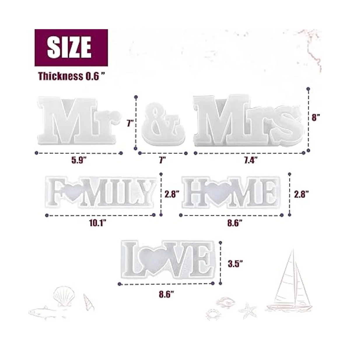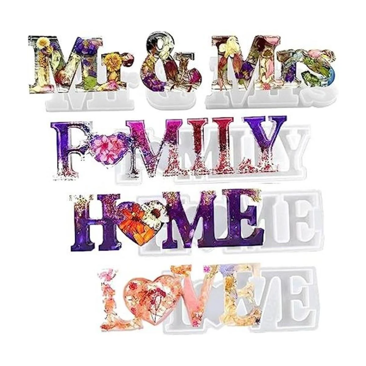 4 moldes de resina para letras Mr Mrs Love Home Family