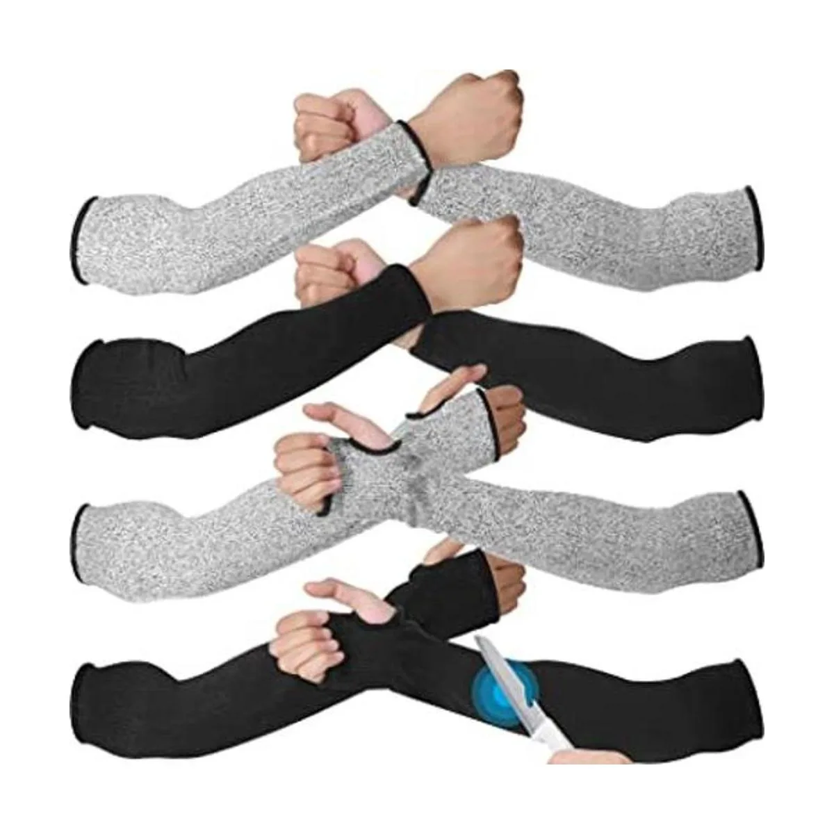 Cantidad suficiente: hay 4 piezas de mangas resistentes a los cortes con agujero para el pulgar y 4 piezas de mangas a prueba de cortes sin agujero para el pulgar en el paquete, que están disponibles en 2 colores clásicos de negro y gris para que puedas satisfacer tus necesidades a juego