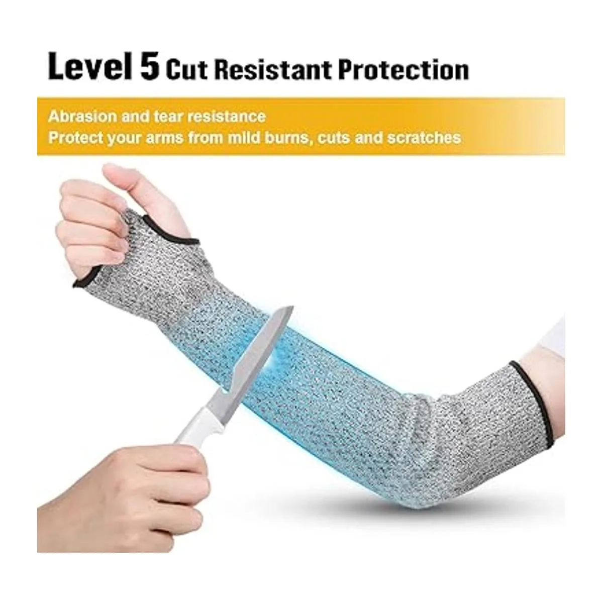 Resistente a cortes de nivel 5: estas mangas de brazo para hombres y mujeres cuentan con 5 niveles de resistencia al corte, son difíciles de romper o desgastar, pueden evitar que tus brazos se quemen leves, moretones, cortes, arañazos para evitar que se dañen por artículos puntiagudos y altas temperaturas, y te proporcionan suficiente calidez en climas fríos