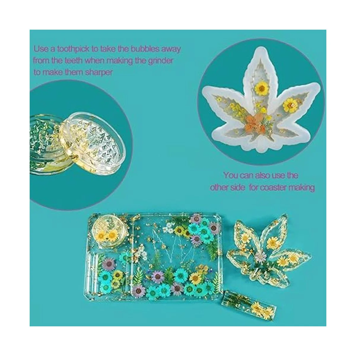 4 PCS Silicone Molds for Epoxy Resin Large Resin Molds Including Rolling Tray Mold Ashtray Mold Joint Holder Mold and Resin Grinder Mold, DIY Epoxy Resin Molds Kit