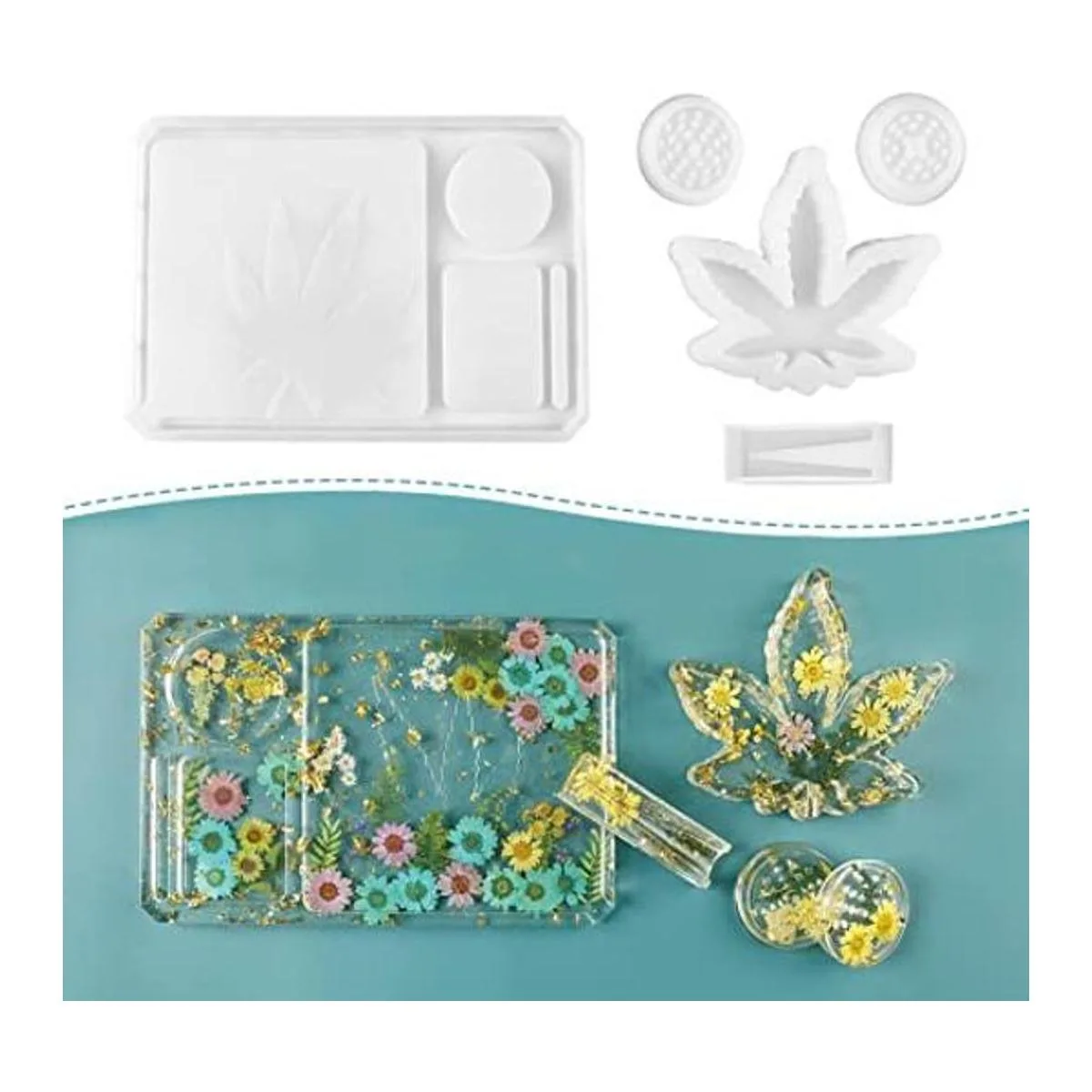 What You Get Resin Dosage 1 pcs resin tray mold: 14.5oz 410g, 1pcs ashtray mold: 8.5oz 240g, 1pcs silicone joint holder mold: 1.6oz 45g, 1set resin grinder mold: 3oz 86g. All dimensions are measured manually and there may be small deviations.