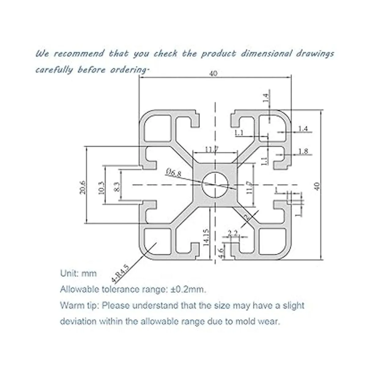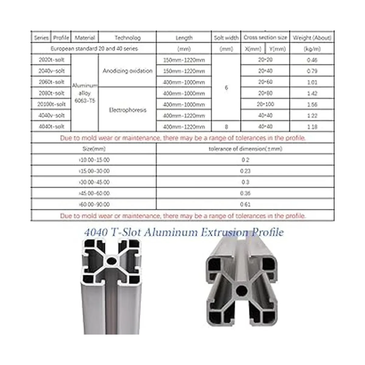 40 serie 4040 perfil de extrusión de aluminio ranura en T hecha de material 6063T5, superficie lisa, estructura fuerte y larga vida útil. Compatible con todos los cierres y accesorios de la serie 40.