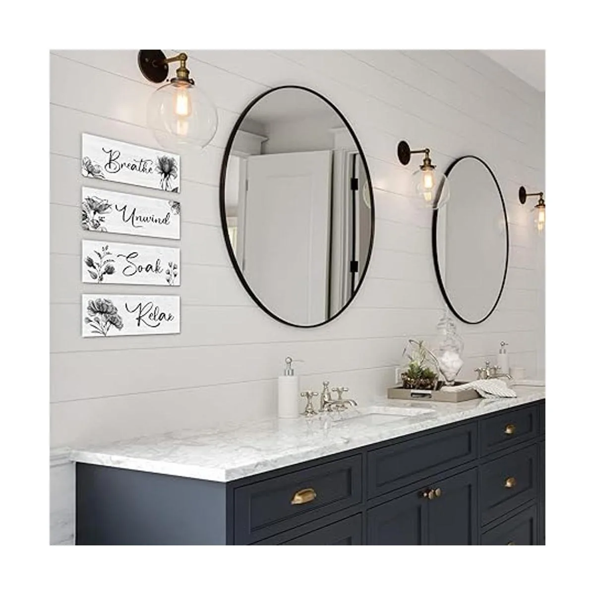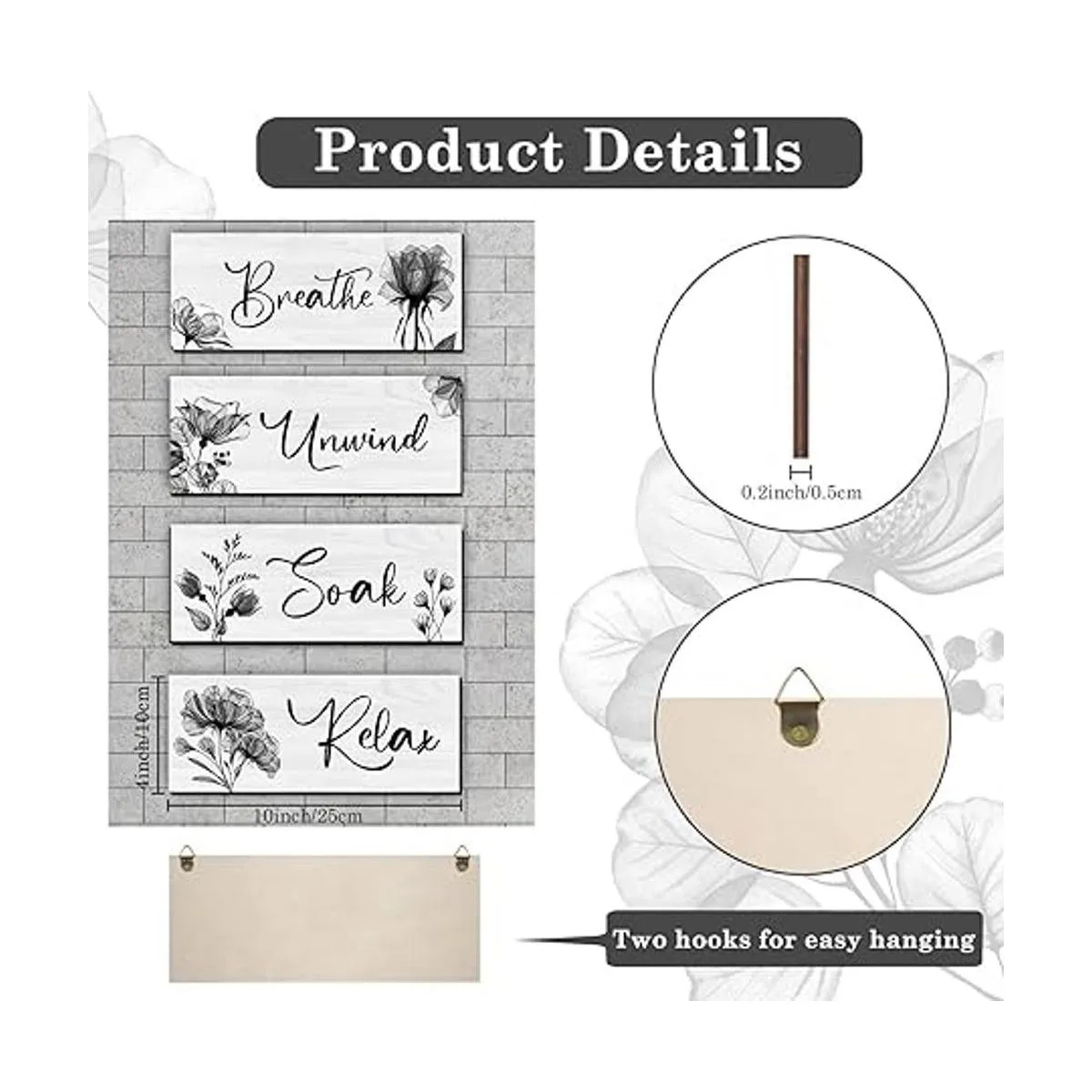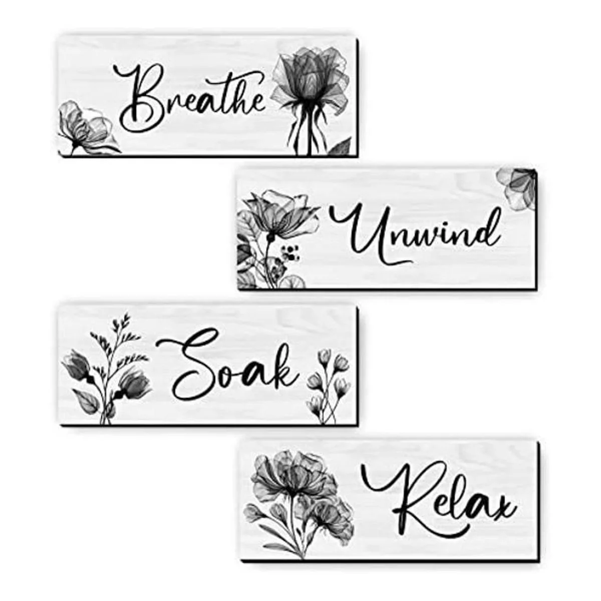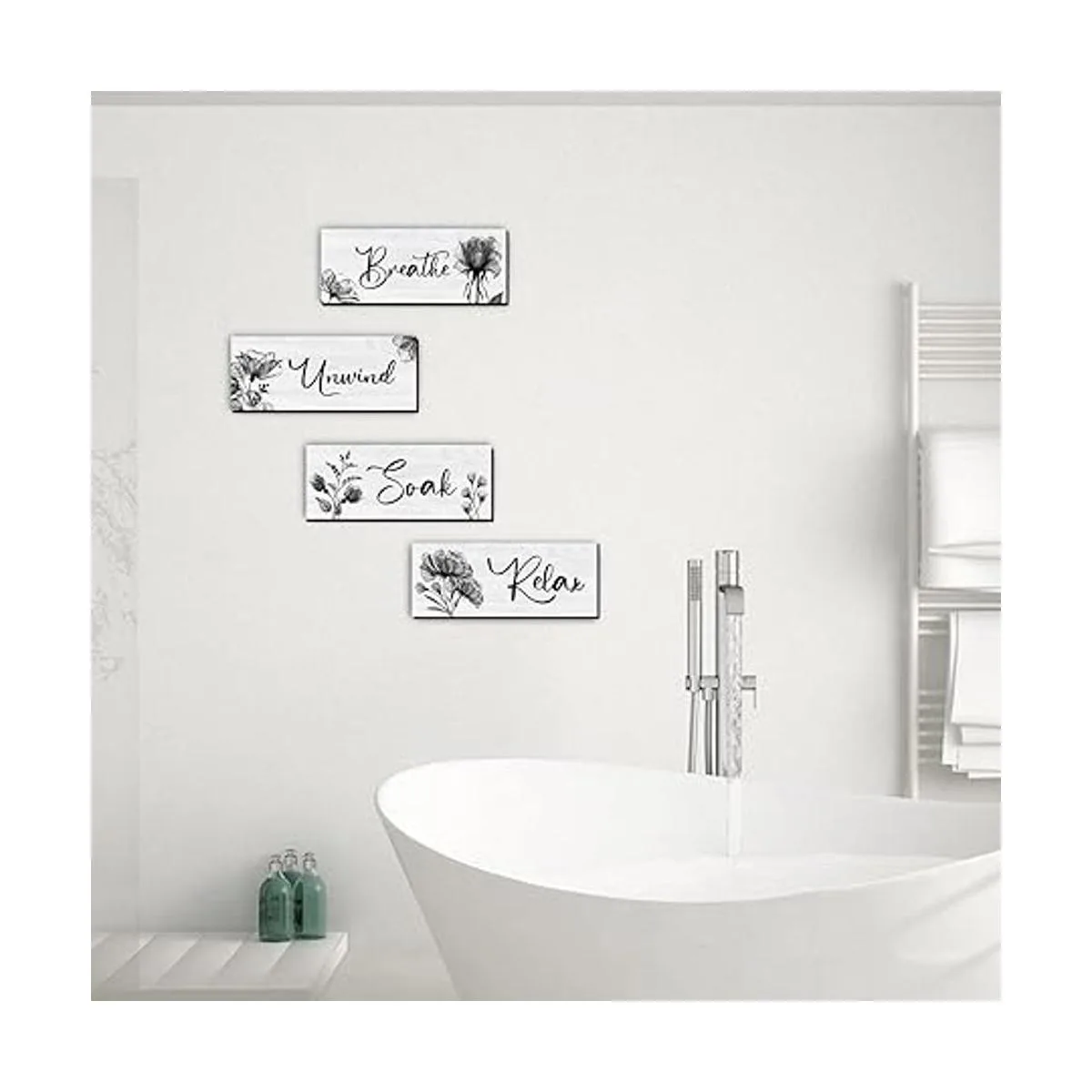 4 piezas de arte de pared para baño, rústico, granja, baño, decoración de pared, letrero para relajarse, descansar, respirar, letrero colgante de madera para el hogar, spa, baño, decoración de lavandería