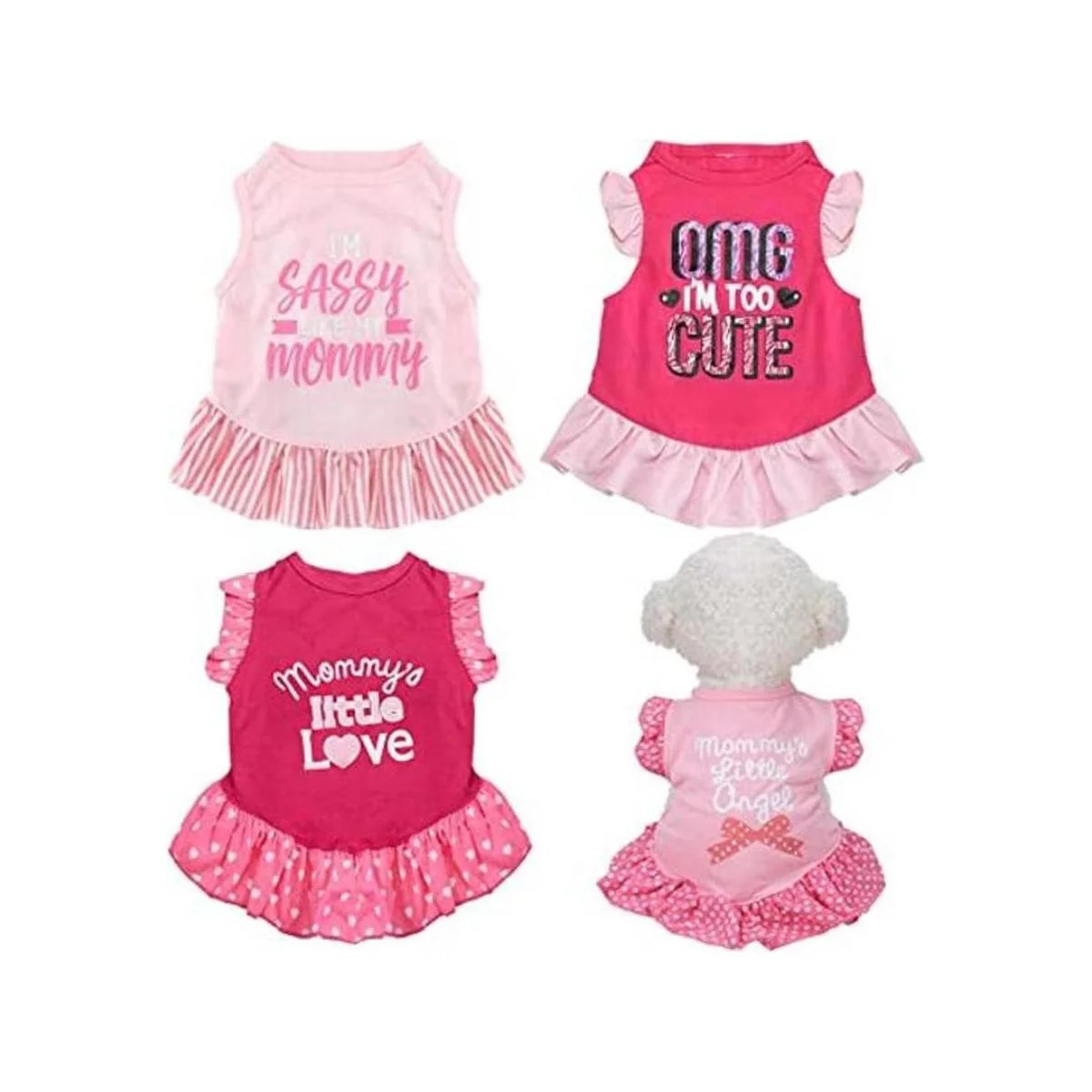 Juego de vestido estampado para perro: el paquete contiene 4 vestidos cálidos para perro con letras impresas, incluyendo el pequeño amor de mamá, el pequeño ángel de mamá, omg Im too cute and Im sassy like my mommy, qué vestido significativo para perro