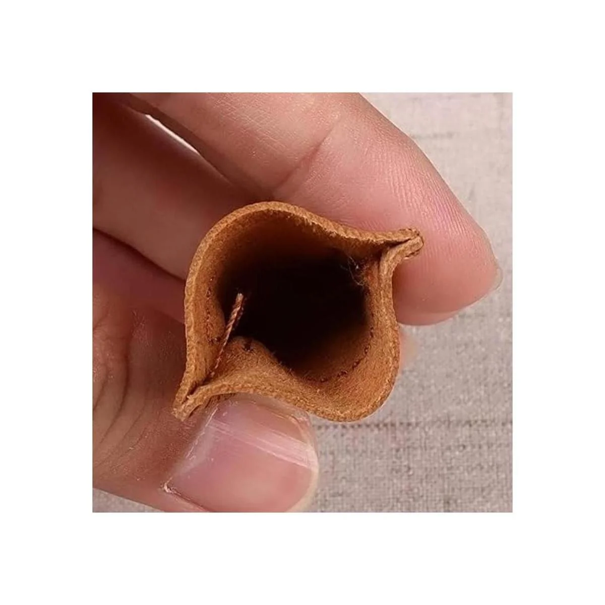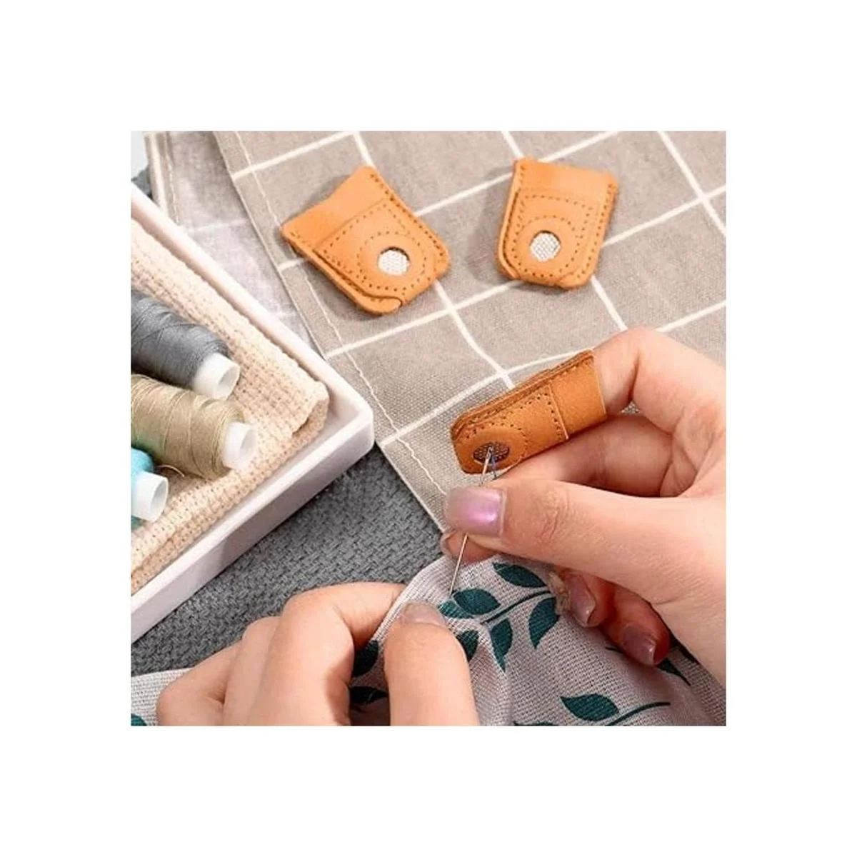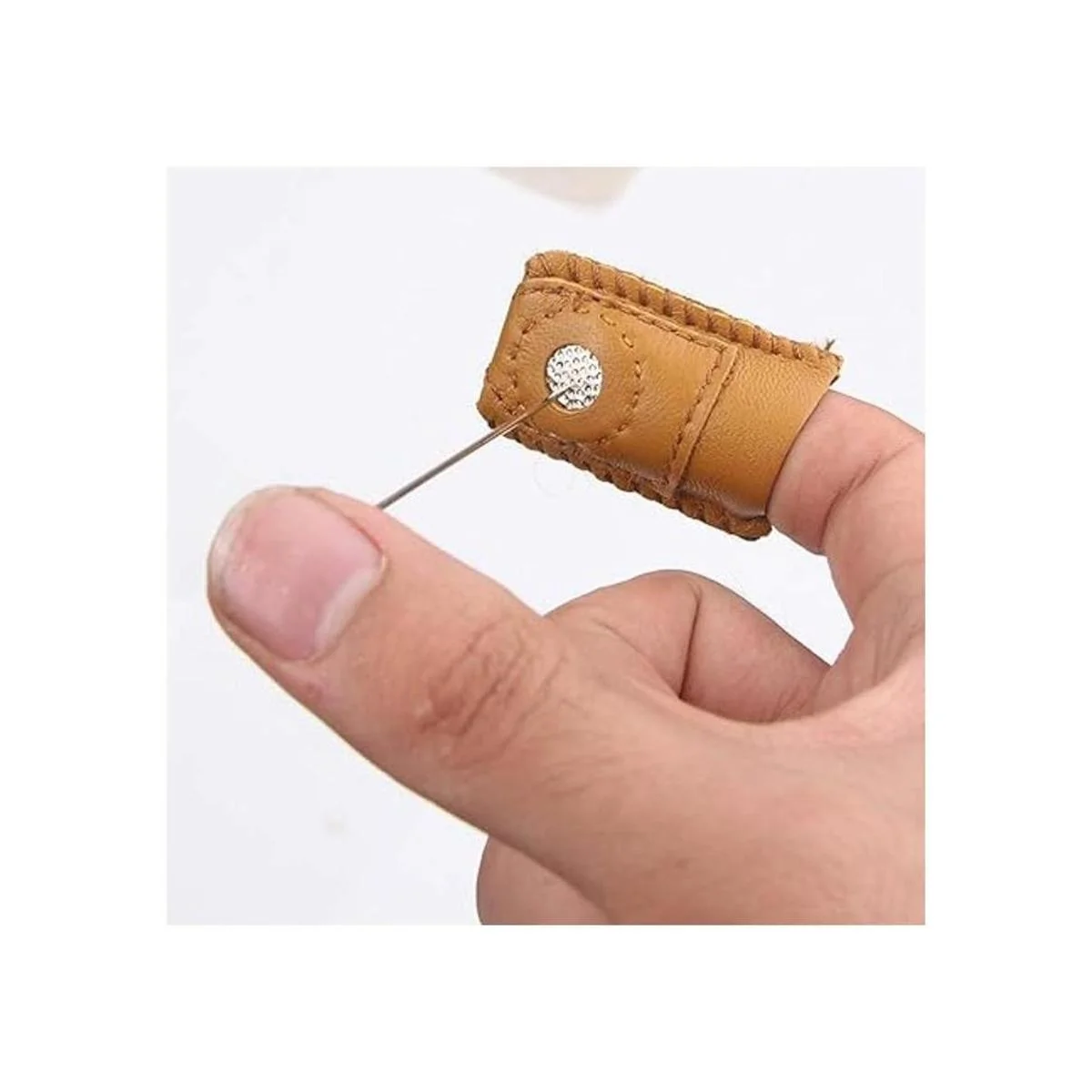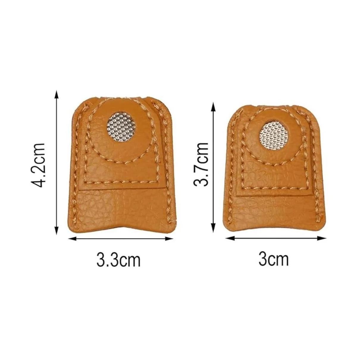 Material fiable: estos protectores de dedales están hechos de piel sintética con disco de metal con hoyuelos, cubierta recubierta antidesgaste.