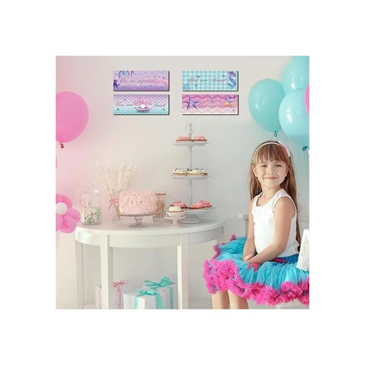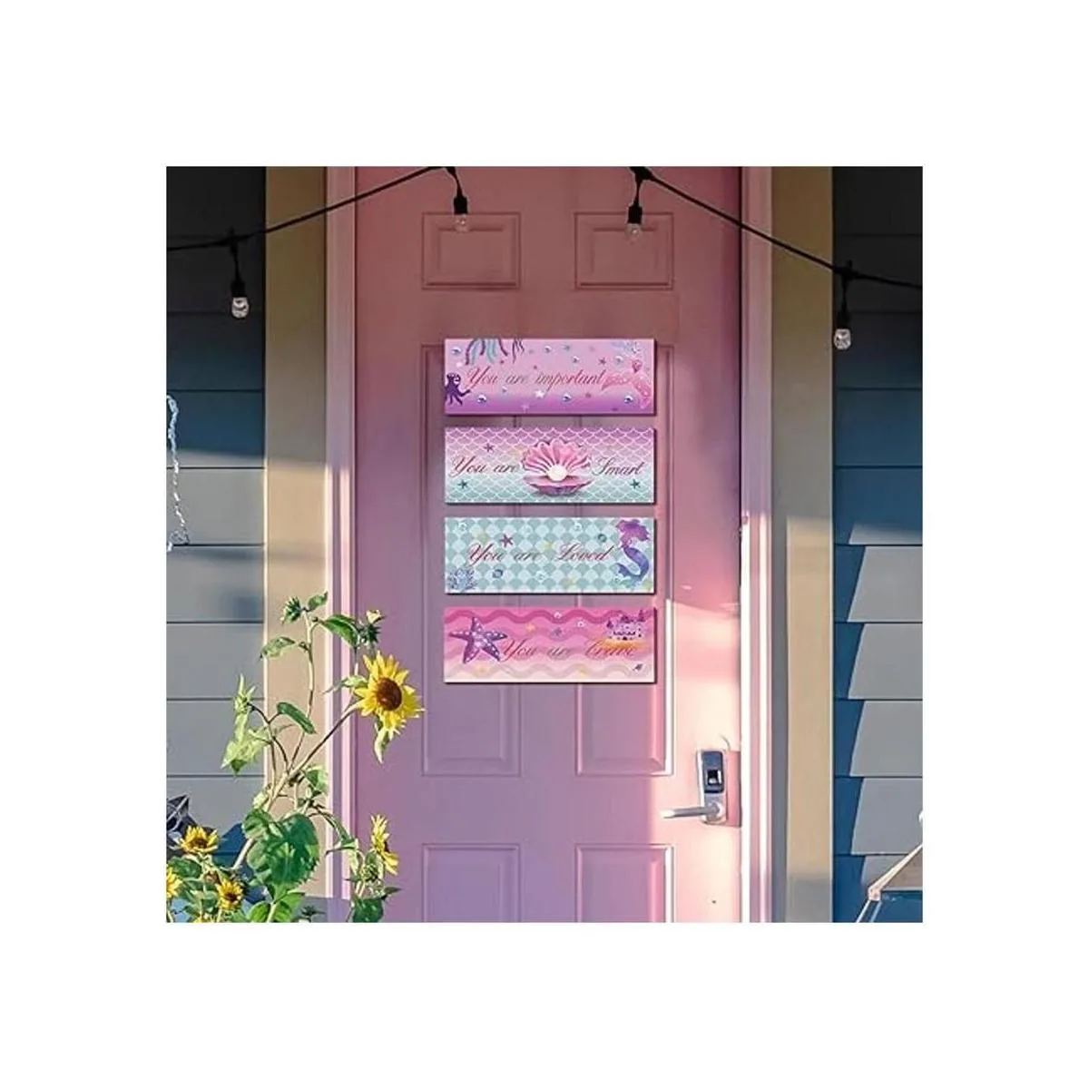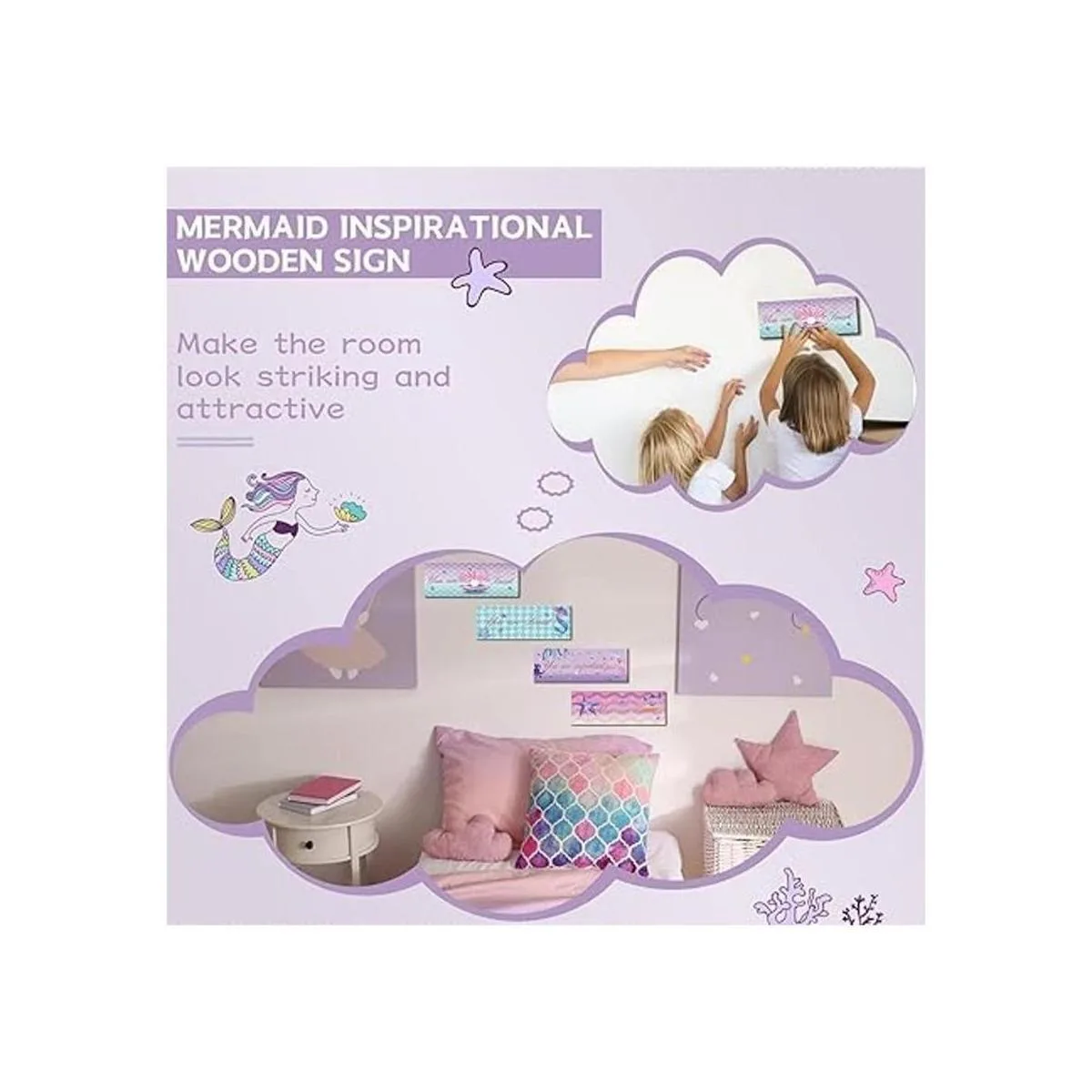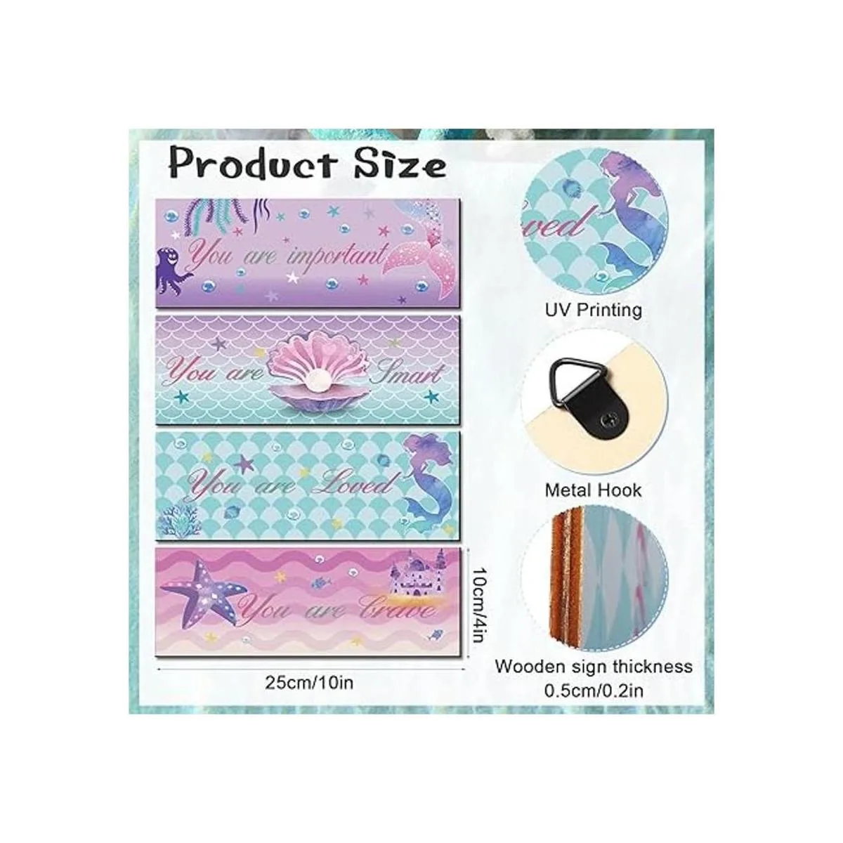 4 piezas de decoración de pared de sirena, arte de pared inspirador de sirena, decoración motivacional de habitación de sirena, impresión de doble cara, arte de pared de sirena, placa de madera positiva para niñas, decoración de dormitorio de baño