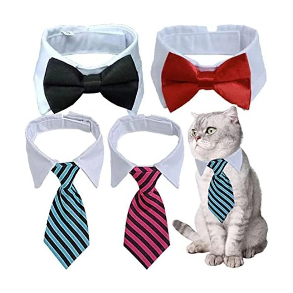 4 piezas de disfraz para mascotas y perros, gatos, corbatín para mascotas, collar formal ajustable para gatos, perros pequeños, accesorios de aseo
