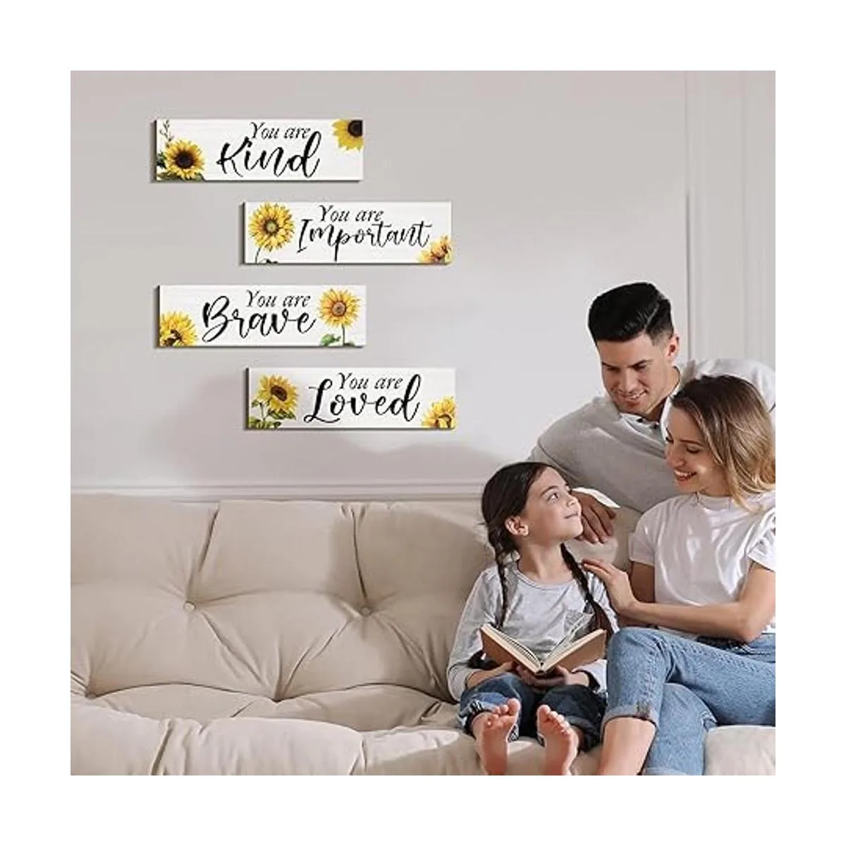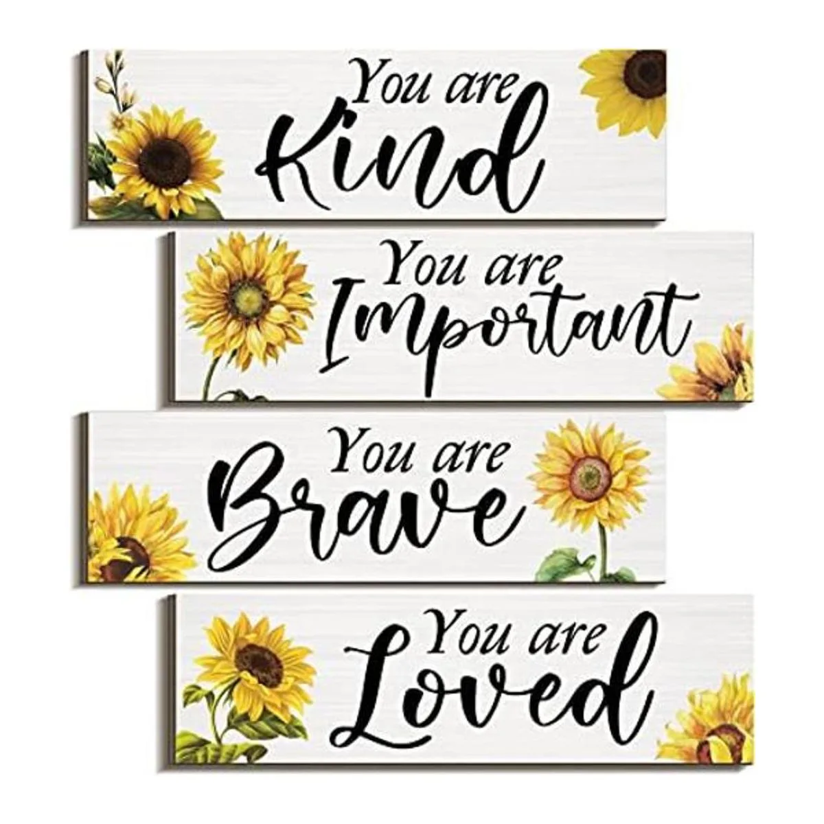 4 piezas de girasoles inspiradores para pared, regalos de girasol para mujer You Are Kind, arte de pared rústico, letrero de madera de girasol, decoración colgante para el hogar, sala de estar, dormitorio, baño, cocina, puerta