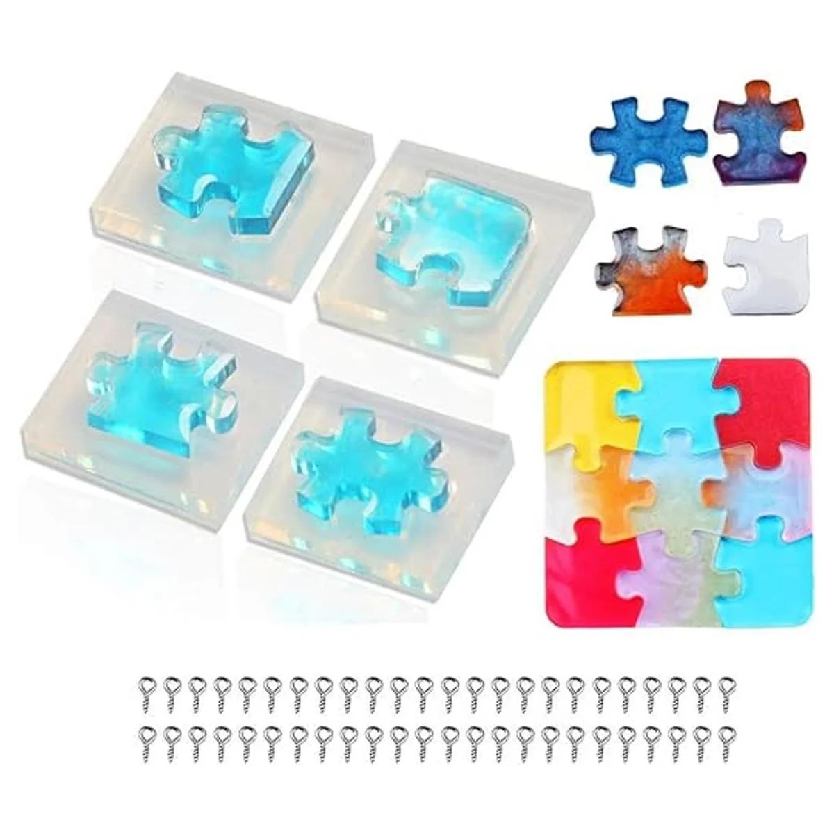 4 piezas de moldes de resina de silicona para rompecabezas con 100 piezas de tornillos, mini rompecabezas de resina epoxi de silicona para joyas, pendientes, collares, llaveros, moldes para hacer manualidades, herramientas de manualidades