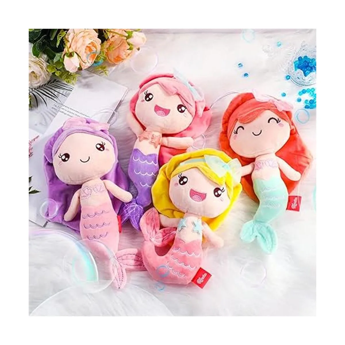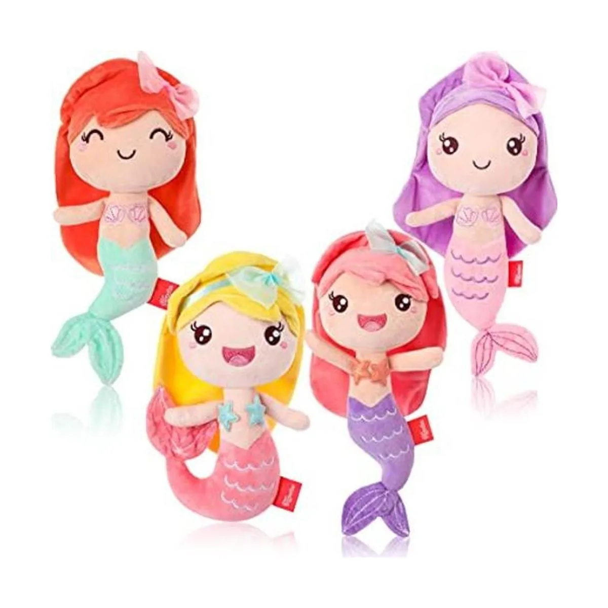 4 piezas de muñeca de sirena de felpa con diseño de sirena suave, muñecas de princesa para niñas, fiestas de cumpleaños, regalos del día de San Valentín, sirena, princesa, decoración de habitación temática estilo bonito