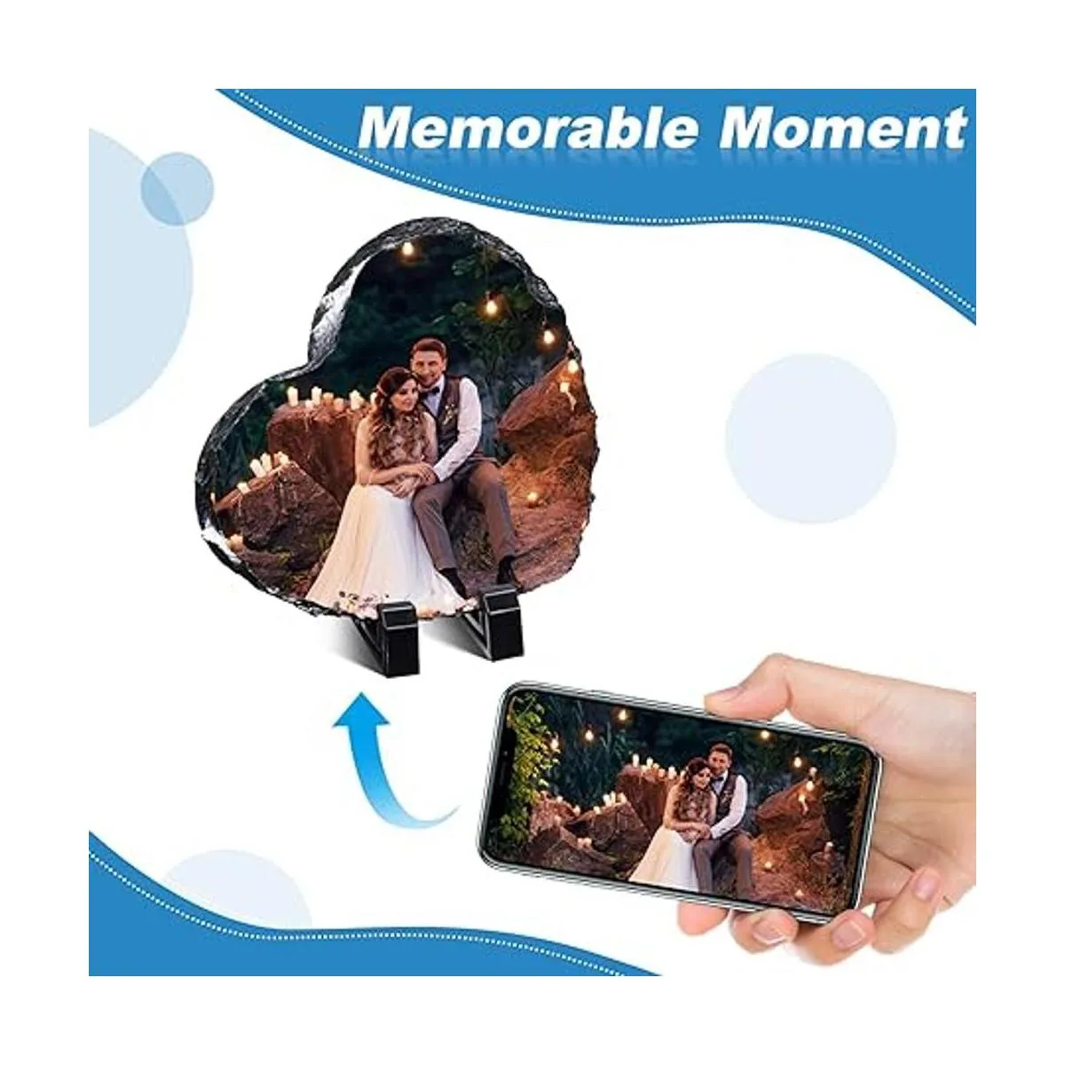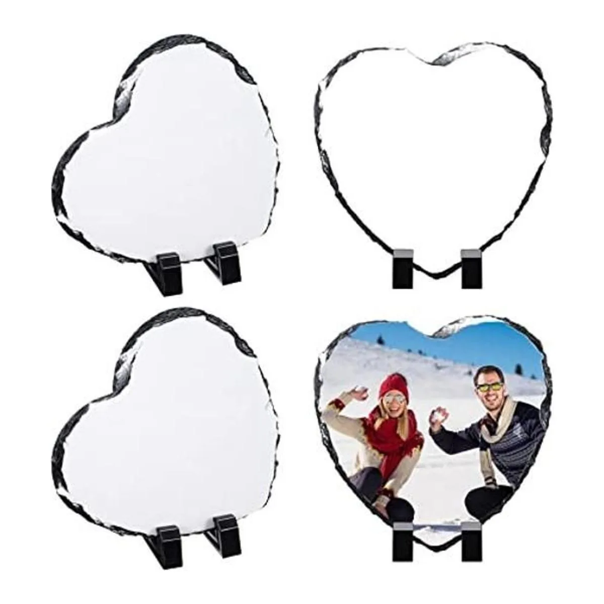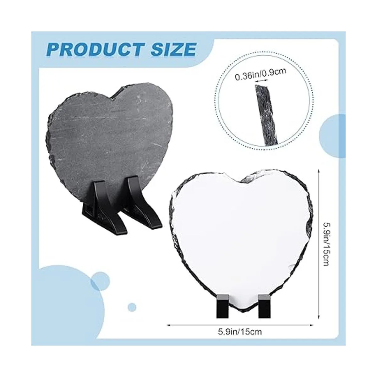 4 piezas de pizarra de sublimación en forma de corazón, placa de piedra de pizarra en blanco con soporte de exhibición, marco de fotos personalizado para máquina de prensa de calor