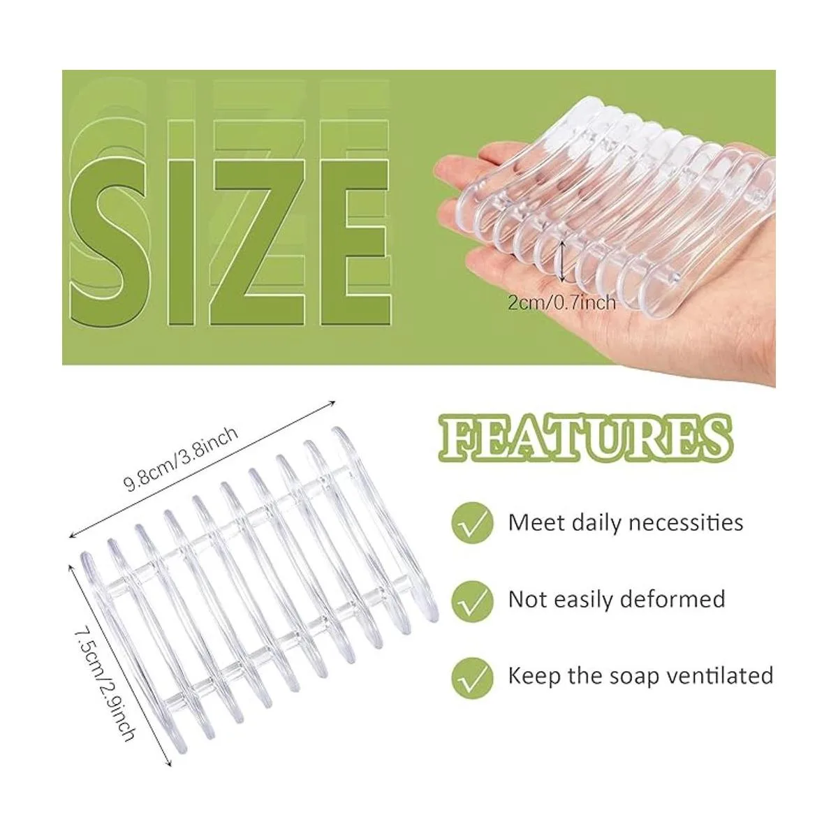 Práctico y elegante: el escurridor de jabón con un diseño de drenaje puede maximizar la vida útil de tus jabones, puede evitar la colección de desorden pegajoso que resulta de jabones húmedos; además, el recipiente de jabón tiene un aspecto elegante, que puede combinar bien con otras decoraciones