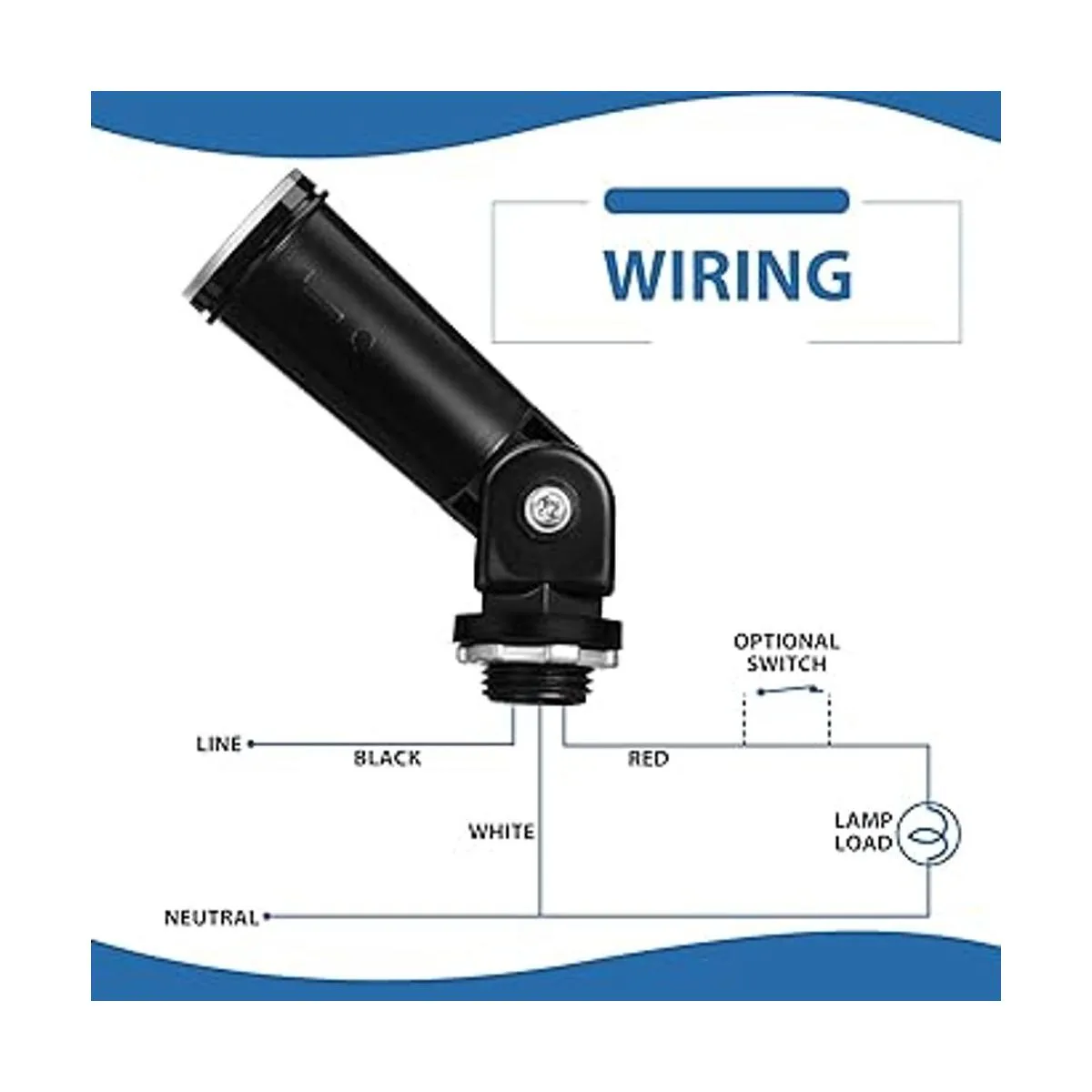 Fácil de instalar: utilizando el método de instalación giratorio, este controlador de luz para exteriores se puede instalar fácilmente en la lámpara de enfoque precisa; simplemente desconecta la fuente de alimentación, coloca el cable de tornillo del interruptor en el agujero del grifo y bloquearlo con una arandela de goma y tuerca de aleación de zinc fija
